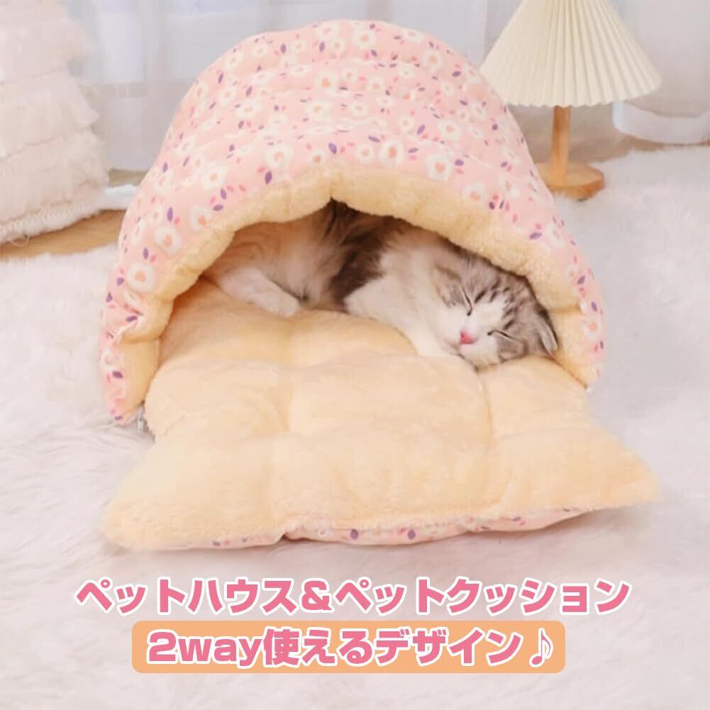 Bidason 猫 ペット ハウス ドーム型 クッション リバーシブル 2way ペットベッド ファスナー付き 外し可能 柔か 暖か ぐっすり眠る 保温 防寒対策 小型 犬用 子猫 ペット用品 通年