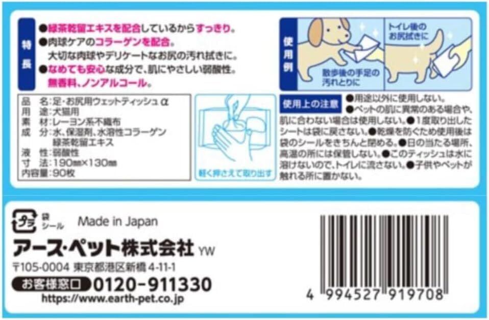 わんちゃん、ねこちゃんのニオイと汚れスッキリ! ・緑茶乾留エキスを配合しているからすっきり。 ・肉球ケアのコラーゲンを配合。大切な肉球やデリケートなお尻の汚れ拭きに。 ・なめても安心な成分で、肌にやさしい弱酸性。 ・無香料、ノンアルコール。