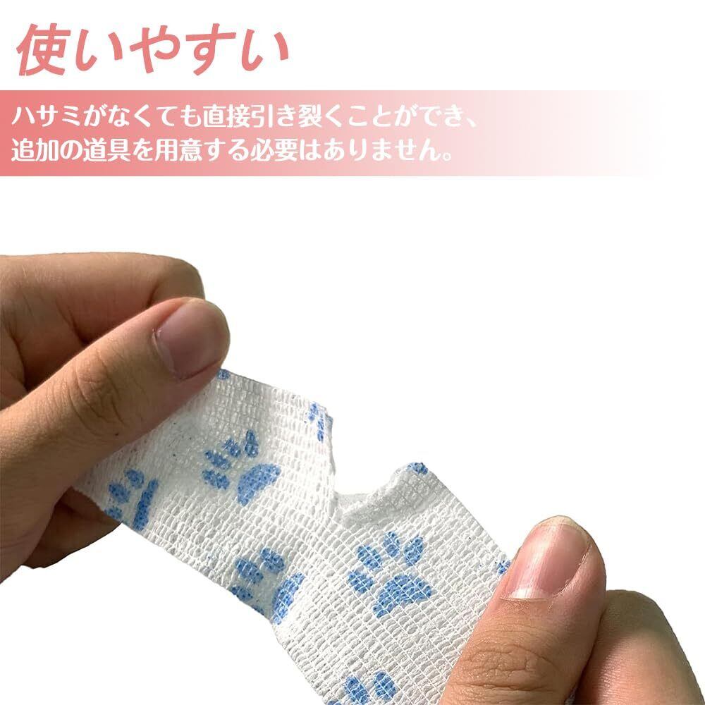 【2022最新】犬 傷舐め防止 多機能 猫 通気性 テーピング 自着性 ペット用 伸縮性あり 5cm×4.5m 粘着包帯 6点セット ペットフレックス サムコス