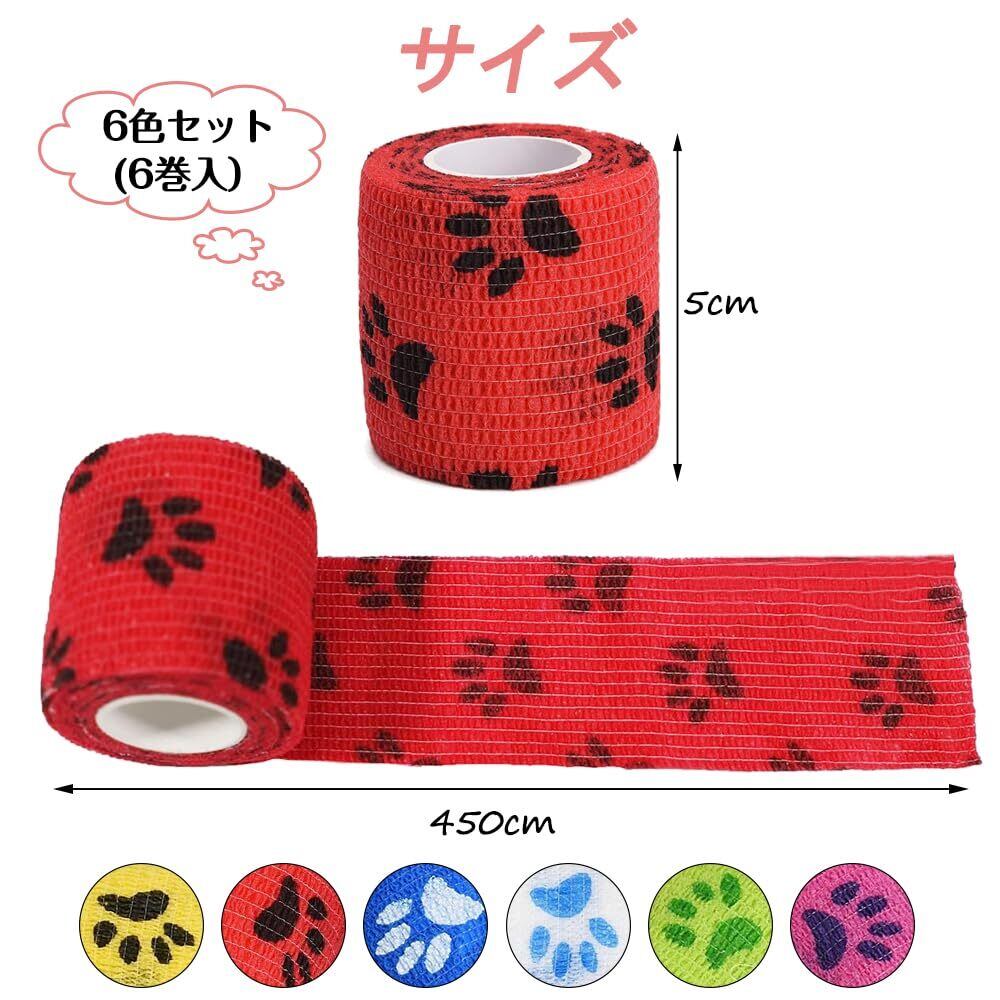 サムコス ペットフレックス 粘着包帯 5cm×4.5m 伸縮性あり 自着性 テーピング 通気性 多機能 傷舐め防止 犬 猫 ペット用 6点セット