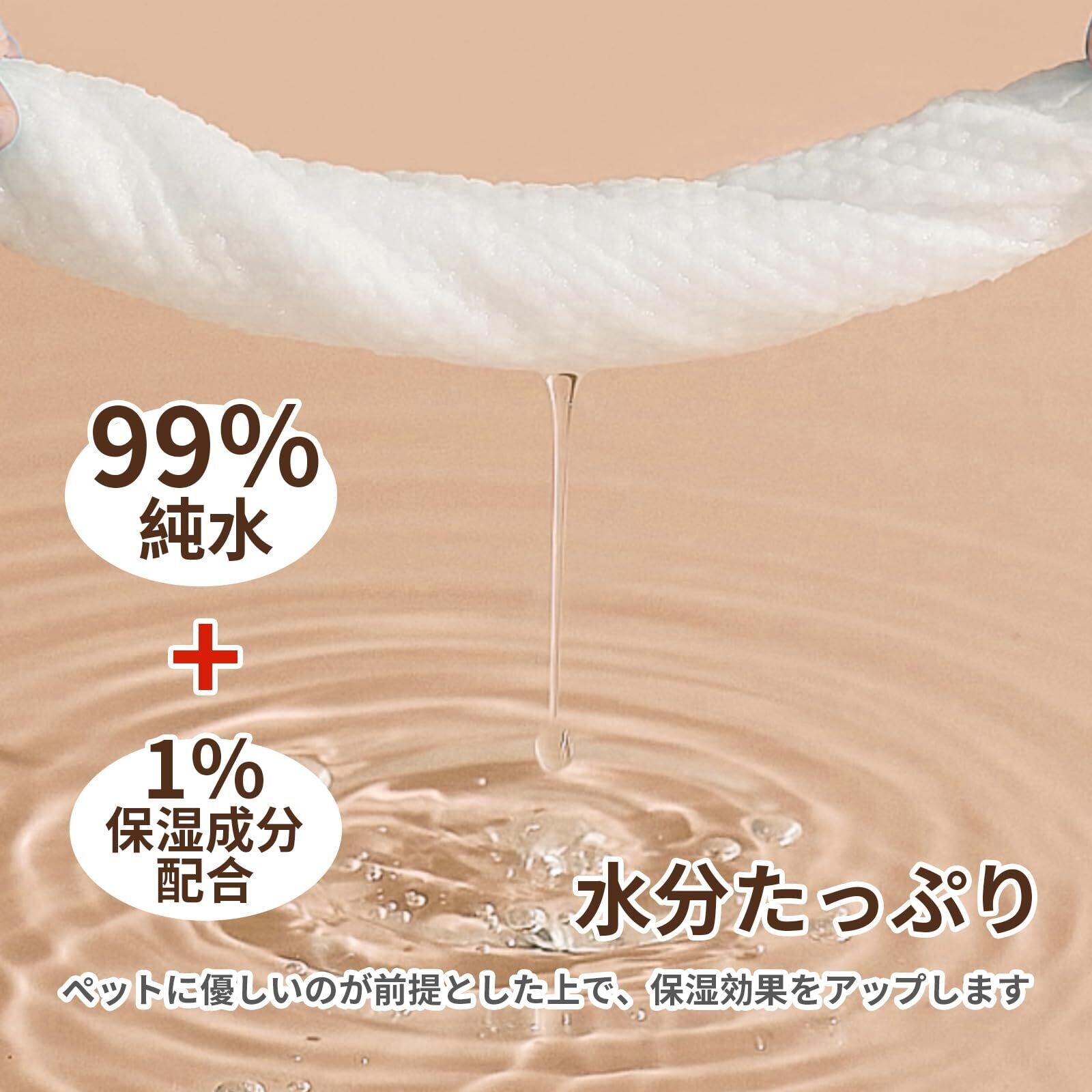 【優れた清潔効果】ペットウェットティッシュは99%水と天然成分を利用して強い清潔力を持っています。爪、目の周り、口の周り、おしり、体とよく気になるニオイと汚れをすっきり拭き取れます。ペットの清潔を保つます。