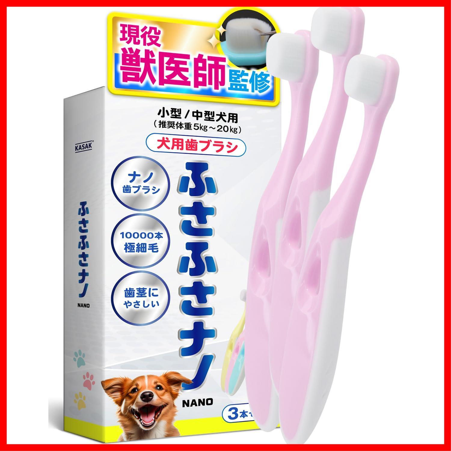色:Pink【獣医師監修】 犬用歯ブラシ 犬歯磨き 小型犬『ふさふさナノ』ナノ歯ブラシ【歯茎にやさしく出血しない】ペット/犬/歯磨き/歯石取り/3本セット(ピンク) KASAK