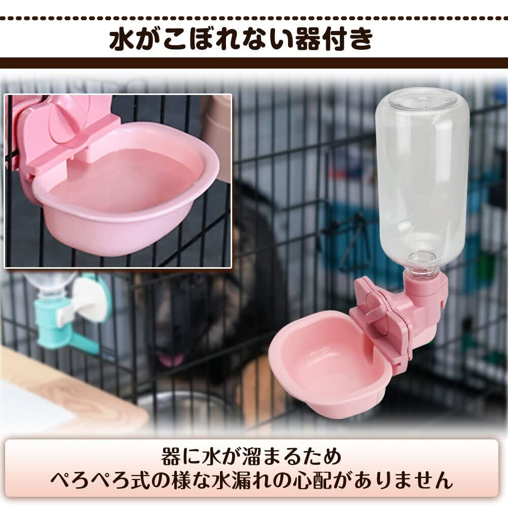 【セット内容】ペット用水飲み器×1点 500mlボトル×1点 【サイズ(約)】全長:24.5cm お皿:外寸12cm×18cm・内寸10cm×7.5cm 深さ:4cm 【カラー】ピンク・ココア・パープル・ライトブルー ※お好みのカラーをお選びいただけます。 【ご利用に辺り:必ずお読みください】※設置時はボトルの中を水で満たしてください。※ボトルをケージに設置する際は、水が漏れていないかアダプター部分を必ず確認してください。※本製品をケージに取り付ける際は、パーツがしっかりと嵌め込まれているかご確認をお願い致します。