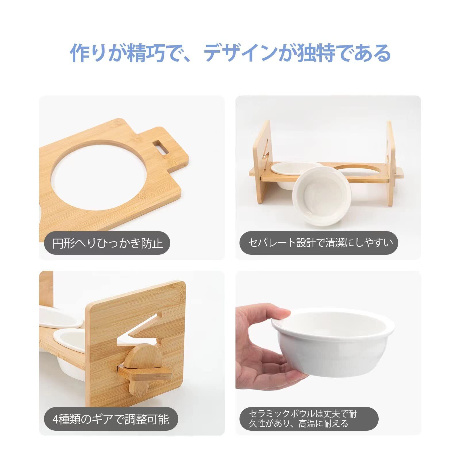 ペット猫 犬 食器フードボウル 4段階の高さ 陶器お皿 小型犬 竹製 餌入れ ごはん皿 水入れ 食べやすい 滑り止め 取り外し可能 セラミックボウル ペット用食器 (セラミックボウル)