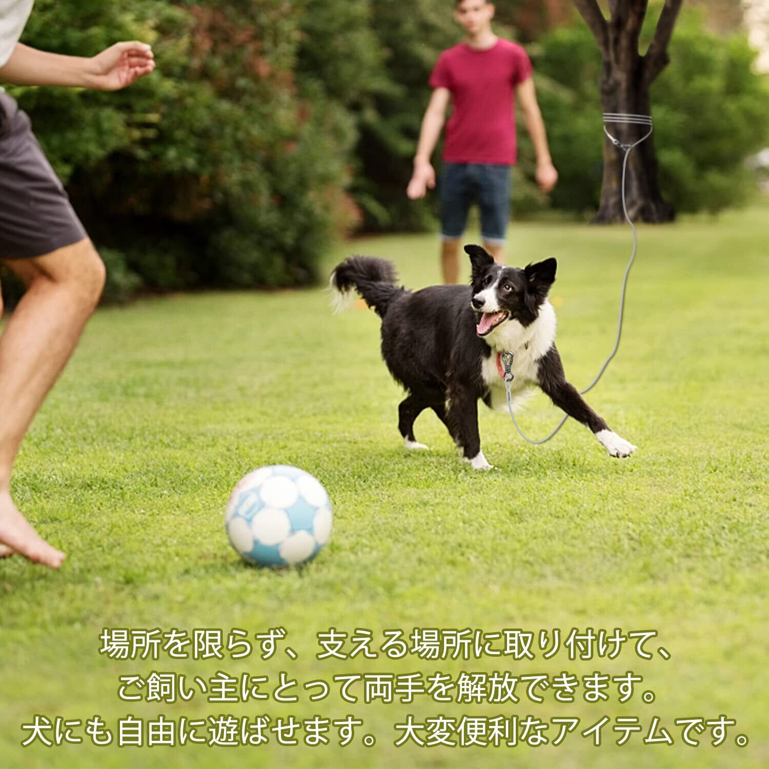 【取り付け簡単と使用】ランナーケーブルの改良フックはステップ3つで、設置完了になります。それにフックが滑り止め設計され、犬の首輪を簡単にロックできます。ロングリード 係留本体が軽い、持ち運び便利です。係留 犬は公園やキャンプなどいろんな場所をご利用できます。立ち木とポール・ステッキにロープを渡しケーブルを繋ぎて犬を自由に遊びさせています。子犬のストレス解消には良い効果があります。ご注意:長時間で繋留することをお勧めません。係留ケーブルに繋ぐ際は、常にペットをの状態を確認する必要があります。