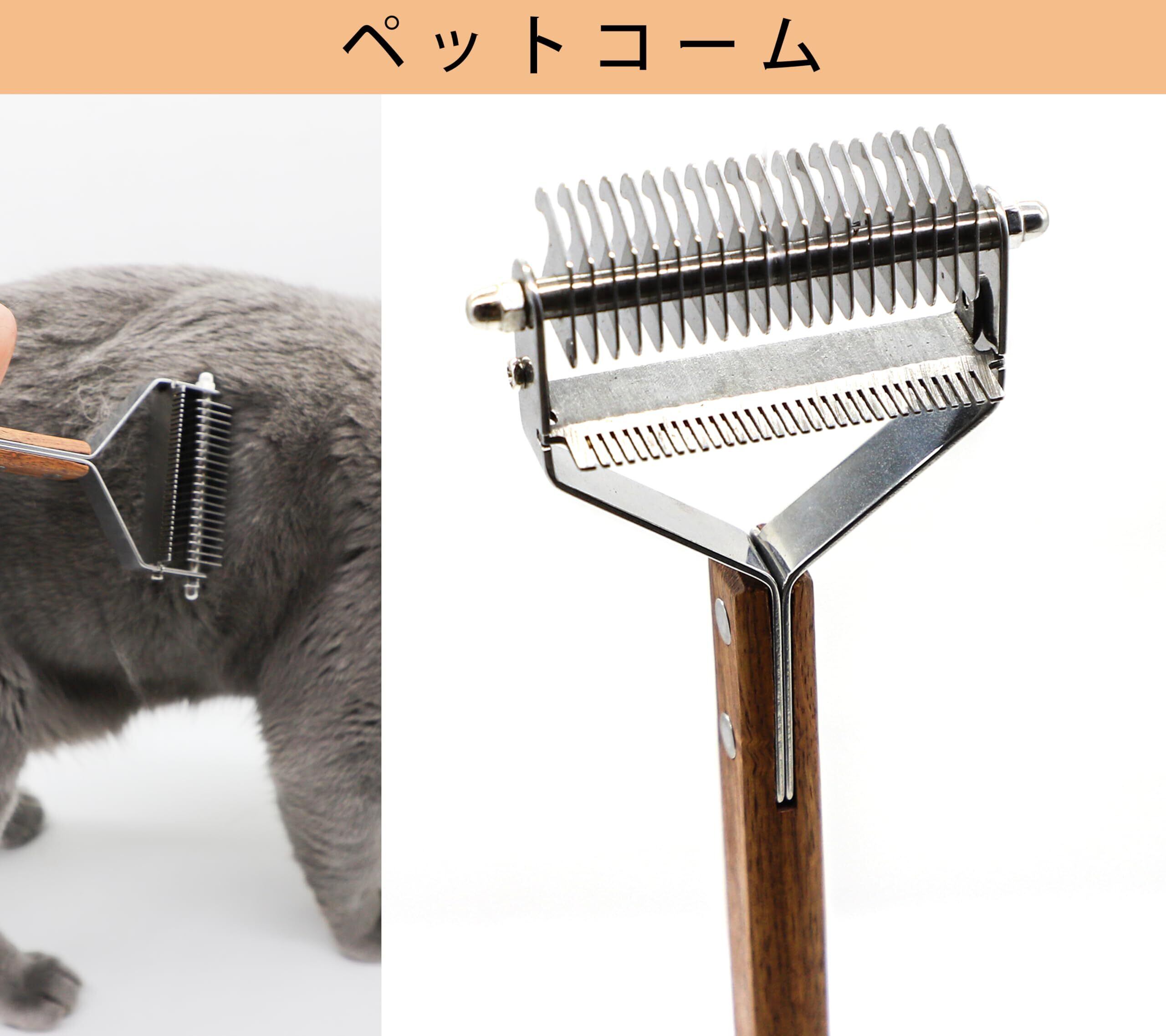 【新着商品】コーム肌を傷めない 毛玉取り 厚い髪結び除去 木製持ち手 両用 犬用 犬ブラシ ペット毛玉取り