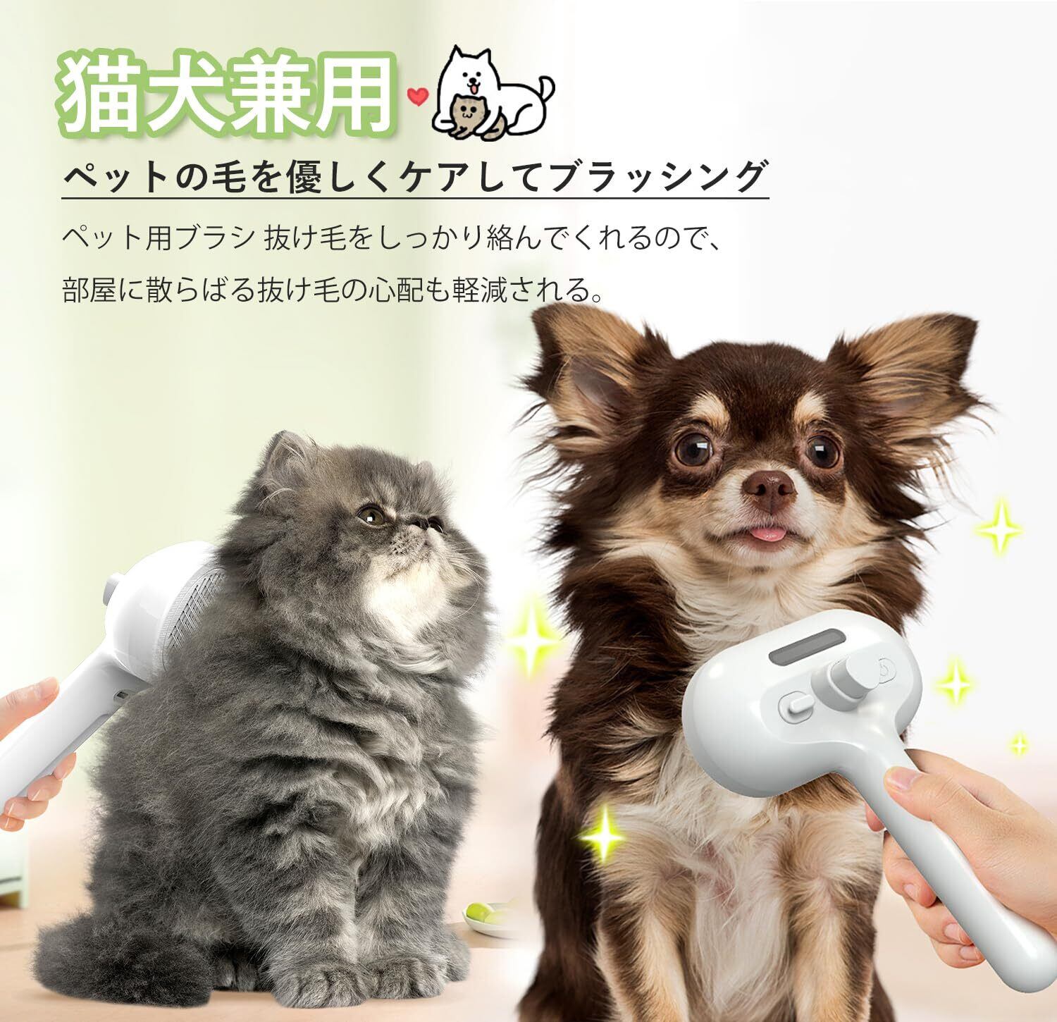 革新的な噴霧式ペットブラシ:革新的なスプレー機能が搭載されています。水タンクに水、柔軟剤、消臭剤を追加することができます。ブラシ スチームのスプレースイッチを押すと、細かい霧が噴き出します。スプレーがペットの毛を少し潤し、髪を柔らかくするのに役立ちます。ペットブラシ静電気や毛がペットを梳く時に飛び回るのを効果的に防ぐことができます。