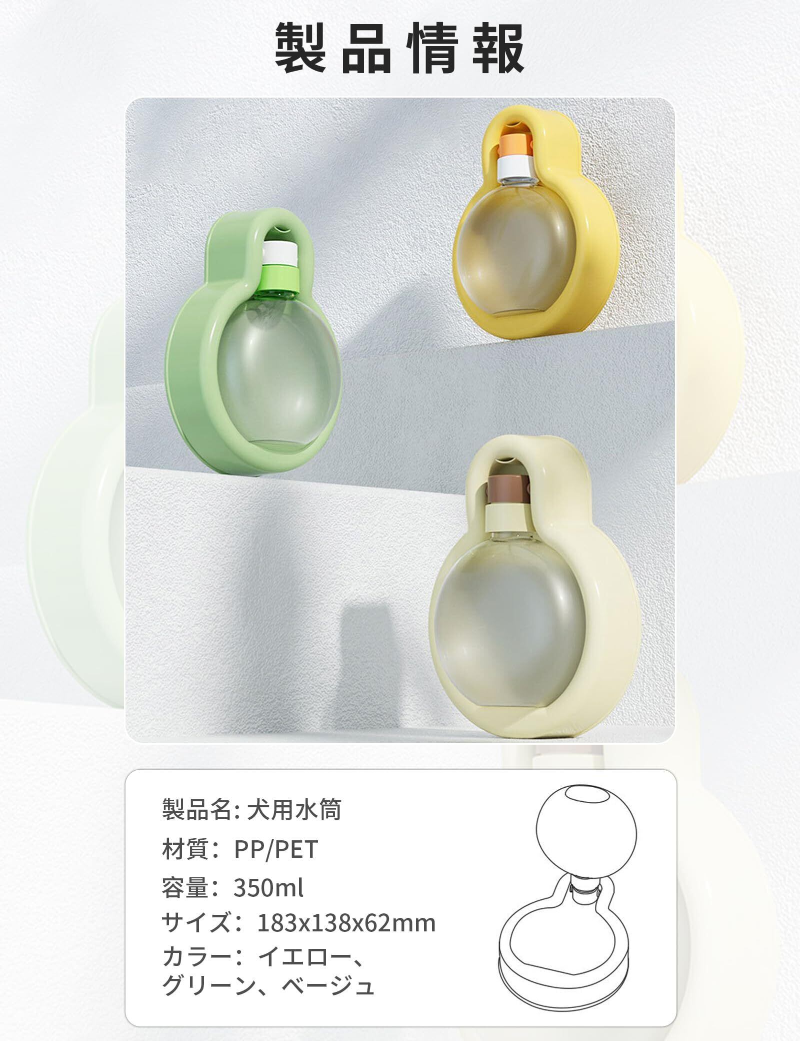 【ペット用水筒の特徴】折りたたみ式で、持ち運びがより便利です。 底面が広く、地面に直接置いてペットが水を飲むことができ、倒れる心配がなく、犬が外出し、家のように水を飲むことができます。犬用水筒はアウトドア活動、散歩、ハイキング、リラックス、ランニングに最適です。ペット用水筒は、公共の場だけでなく、車での移動中にもペットに便利です。美しい外観と質感で、耐久性に優れ、持ち運びが簡単です。