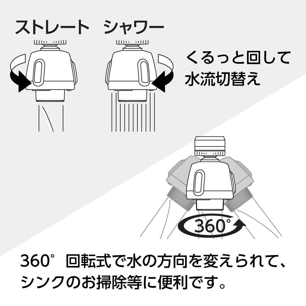 色:ホワイト_スタイル:回して切替SANEI キッチンシャワー 節水35% 首ふり360度回転式 ストレート・シャワ切替式 アダプター付 PM254 ホワイト