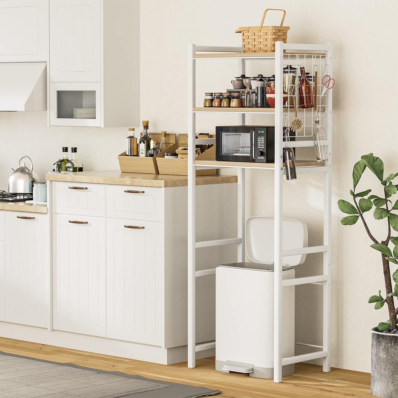 【人気商品】レンジ台 【全体耐荷重75㎏】幅60×奥行40×高さ193cm 物置ラック ゴミ箱上ラック 収納棚 レンジボード 棚3段タイプ オープンラック キッチンラック レンジラック 洗濯機、ゴミ箱、冷蔵庫対応 スリム 組立簡単 Alebert 頑丈 省スペース 隙間収納