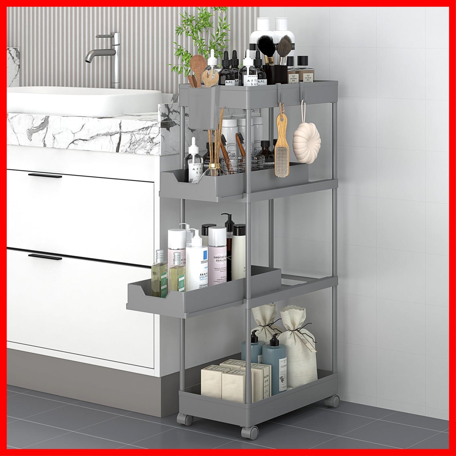 【省スペース】4段式の設計により、たっぷりと収納することができます。キッチン用品、洗面用品、トイレ用品など、様々なアイテムを整理整頓して収納できます。キッチンや洗面所、トイレなどの隙間スペースを有効活用できます。デッドスペースを収納スペースに変えることができます。