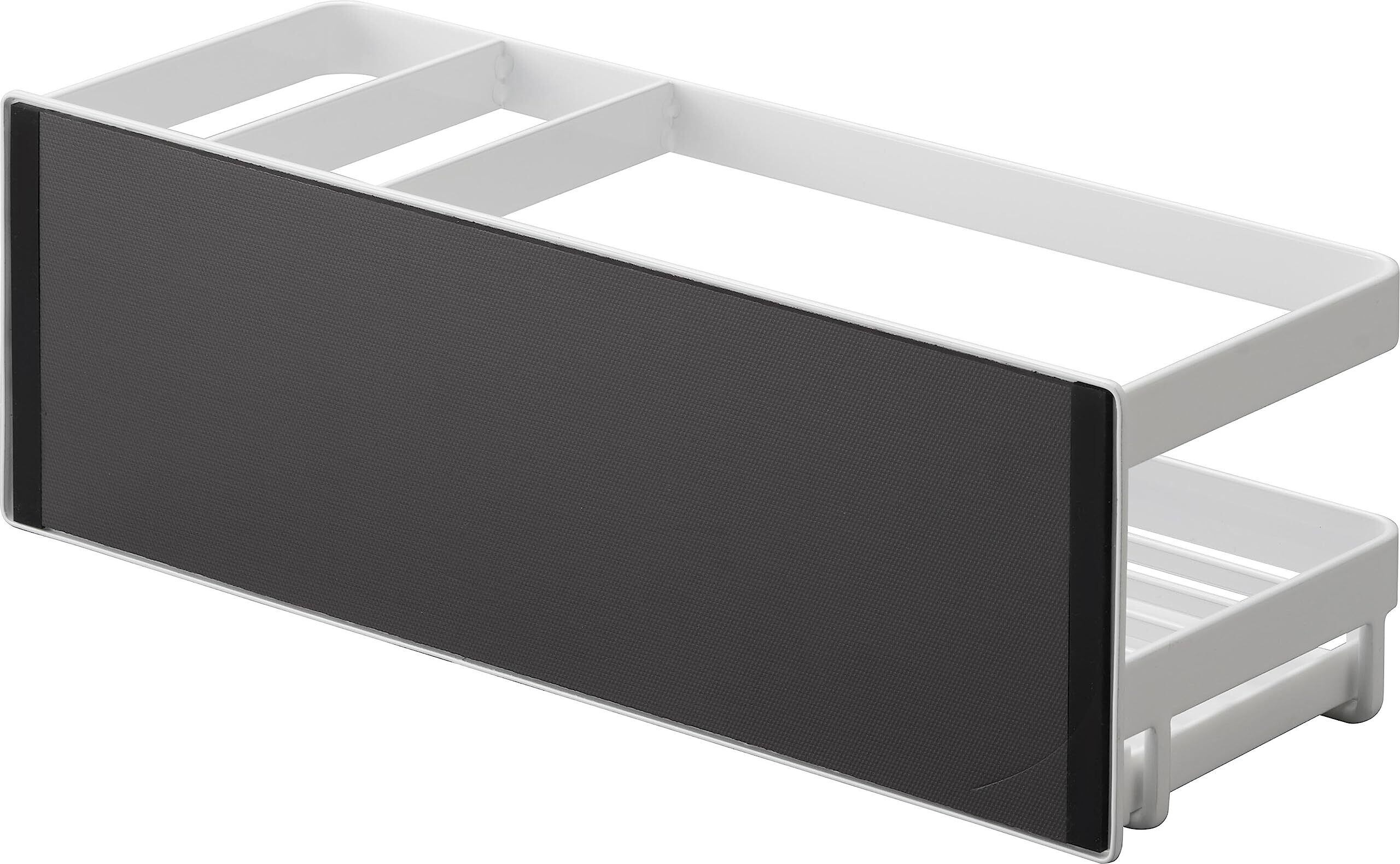 山崎実業(Yamazaki) マグネット スポンジ & ディスペンサーラック トレー付き ホワイト 約W25.5×D9.5×H9cm タワー tower スポンジ置き フック付き 浮かせる収納 3972
