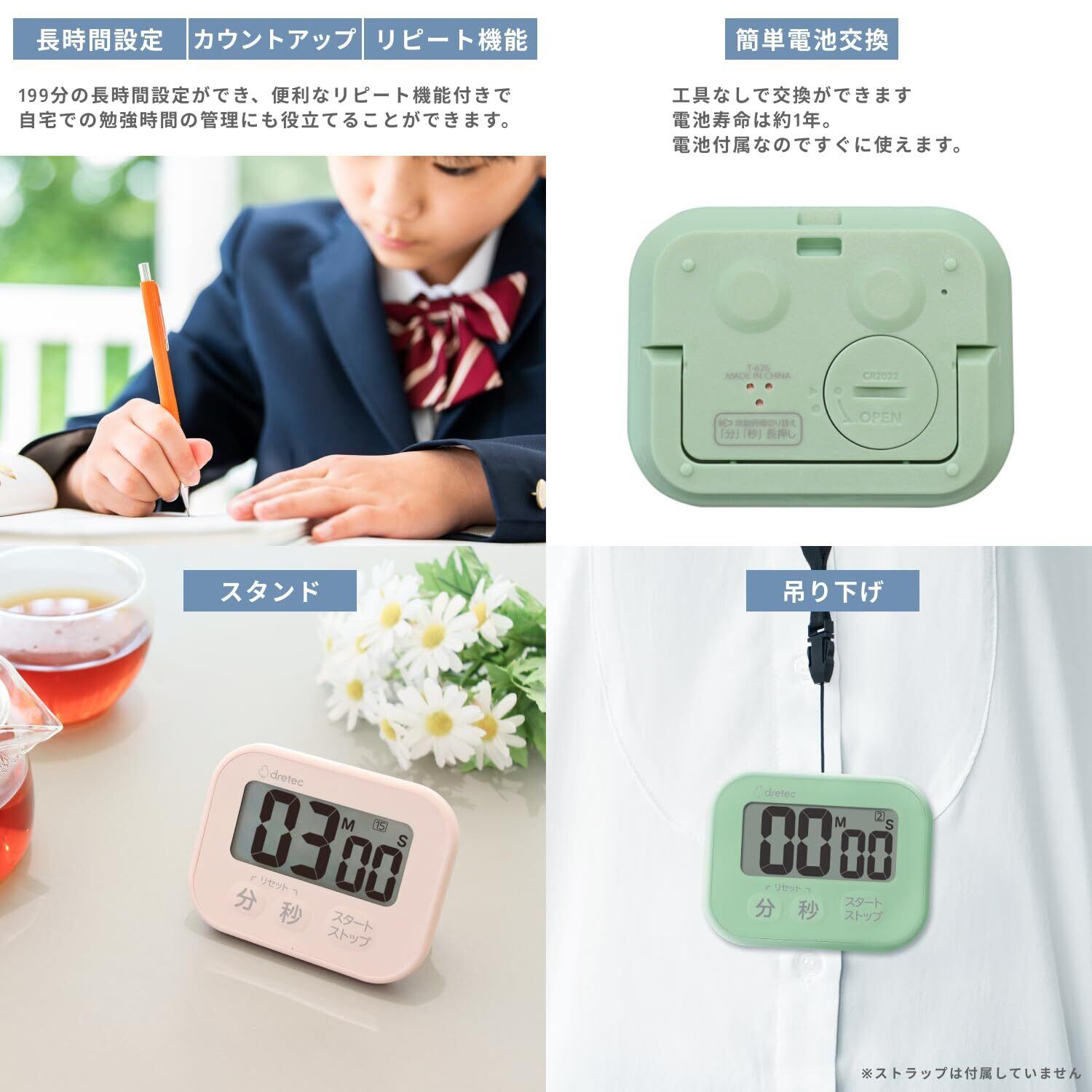 色:02.グリーン防水 マグネット キッチンタイマー アラーム時間設定 洗えるタイマー グリーン dretec(ドリテック)