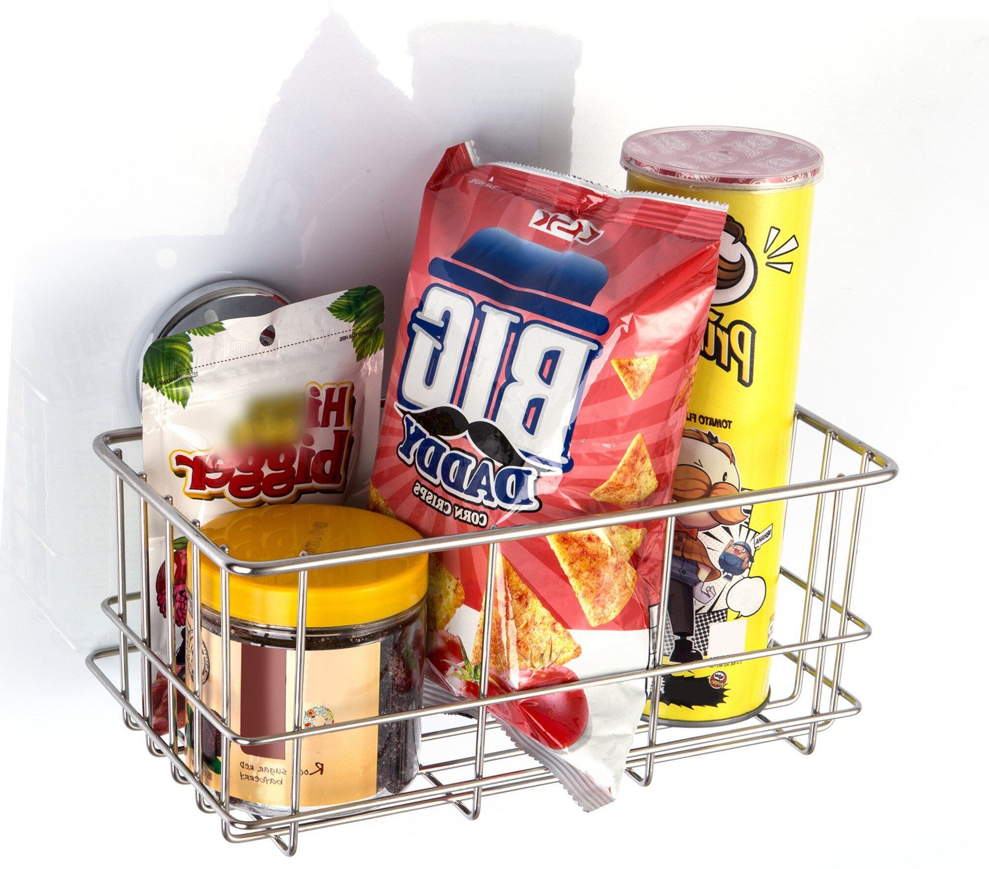 【製品仕様】ラックのサイズ:26 x 14 x 11 cm 耐荷重:5kg 重量:500g 素材:本体:304ステンレススチール;吸盤キャップとノブ:プラスチック(クロームメッキ);吸引キャップ – 天然ゴム