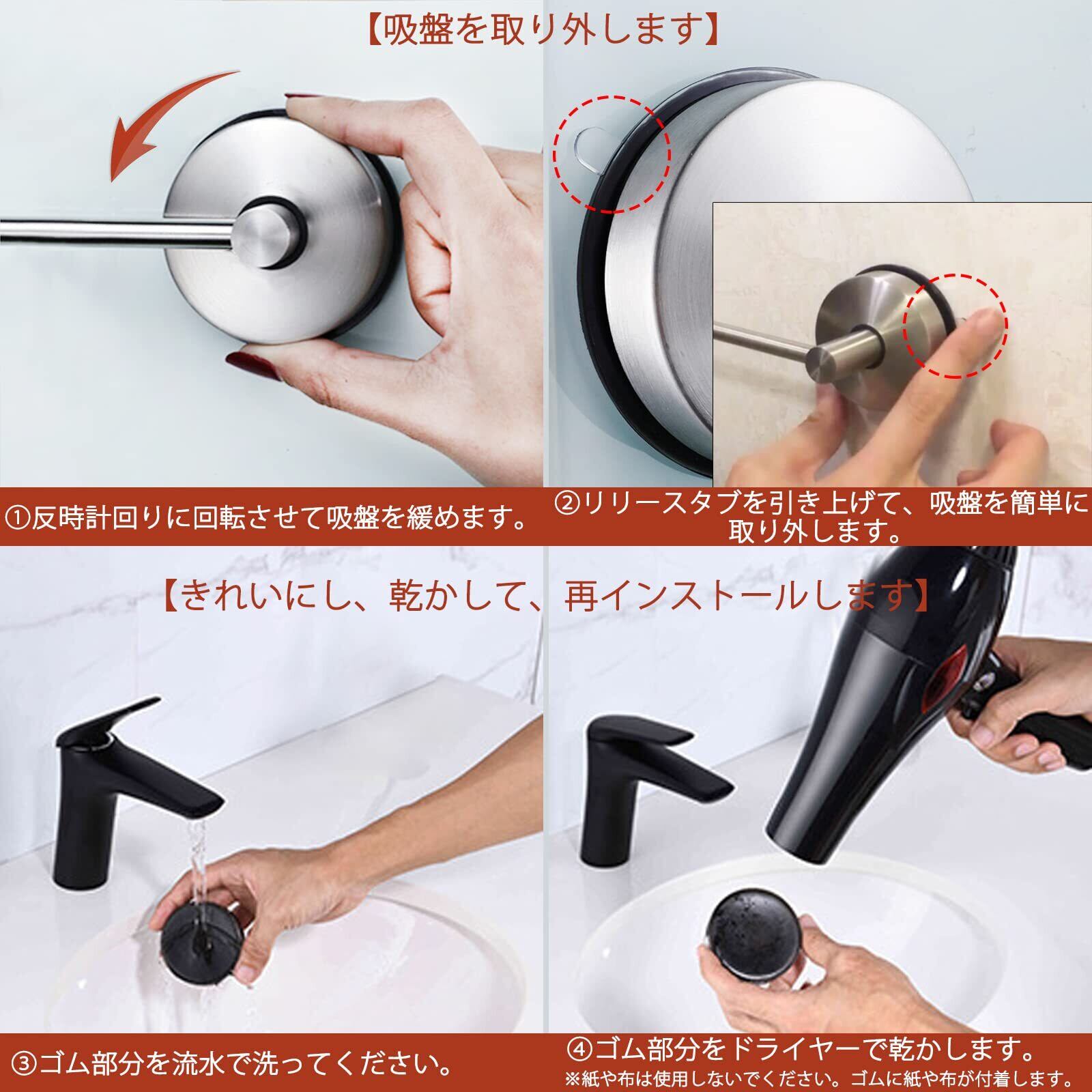 吸盤式で繰り返し利用できるタオル収納バーです