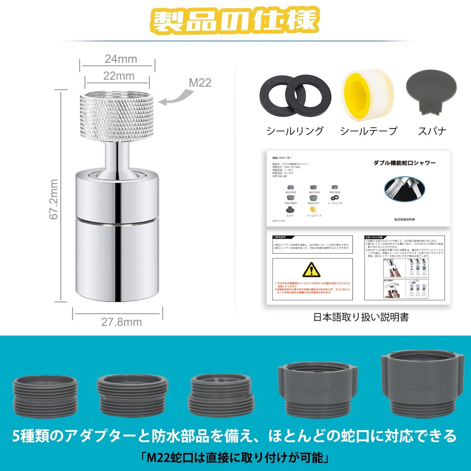 「取付けと取り外しが簡単」M22外ネジ蛇口は直接取り付けることができて、5種類のアダプータと防水部品を含まれます。ローレット滑り止め設計、ツールなしで簡単にフィルターを取り外してフィルター中の雑物を洗うことができます