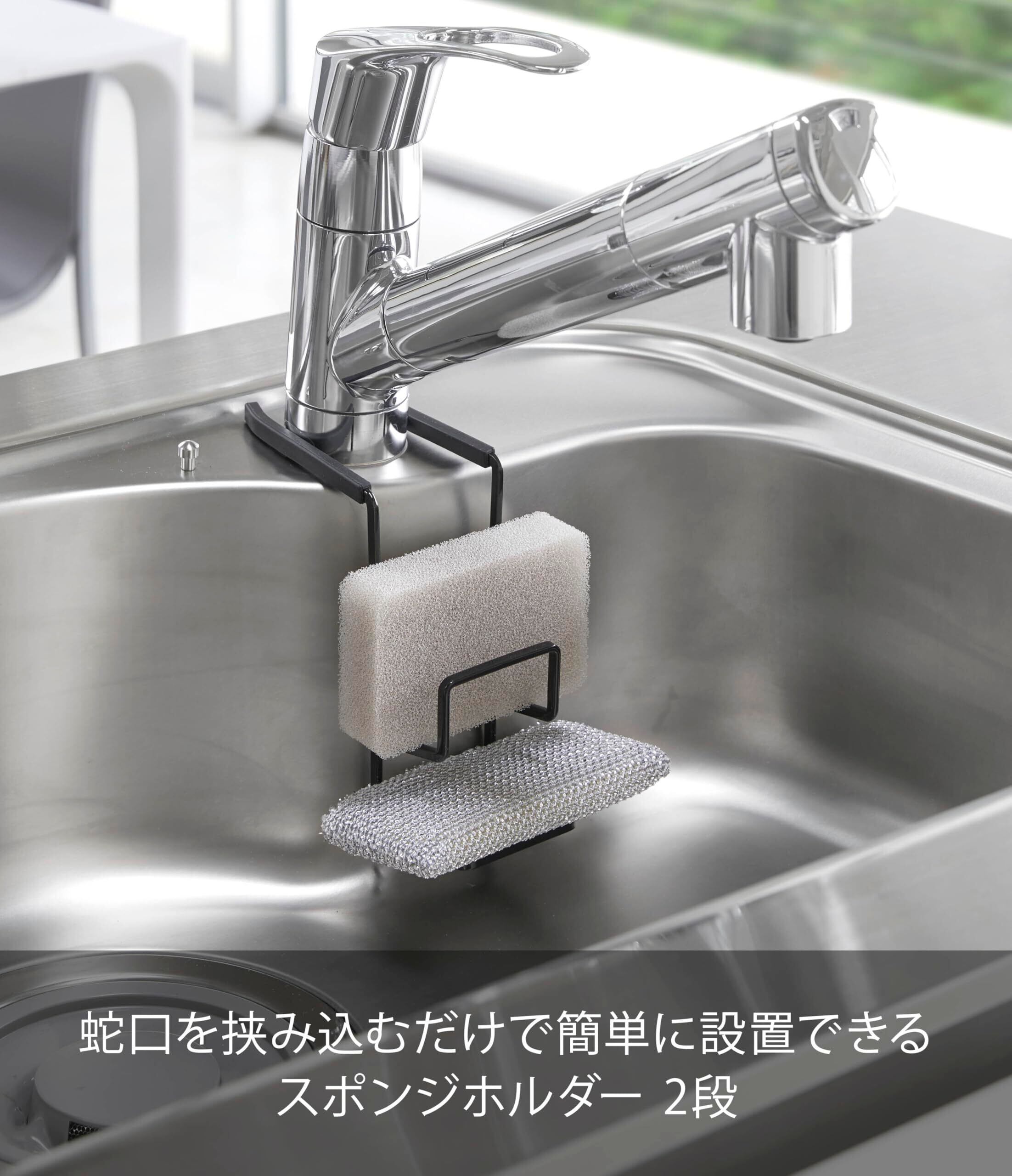 山崎実業(Yamazaki) 蛇口にかけるスポンジホルダー ダブル ブラック 約6X16X15.5cm タワー 4391