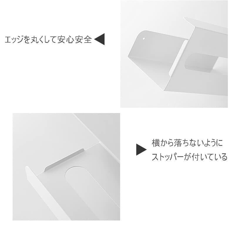 吊り戸棚やデスクに挟み込むだけで簡単にお使いいただけます。厚さがわずか1.68mmで戸棚やデスクのドアが支障なく開け閉めできます。ペーパーホルダーが不安定な場合は、 ネジや両面テープ、 マグネットなどでしっかりと固定することが可能です。