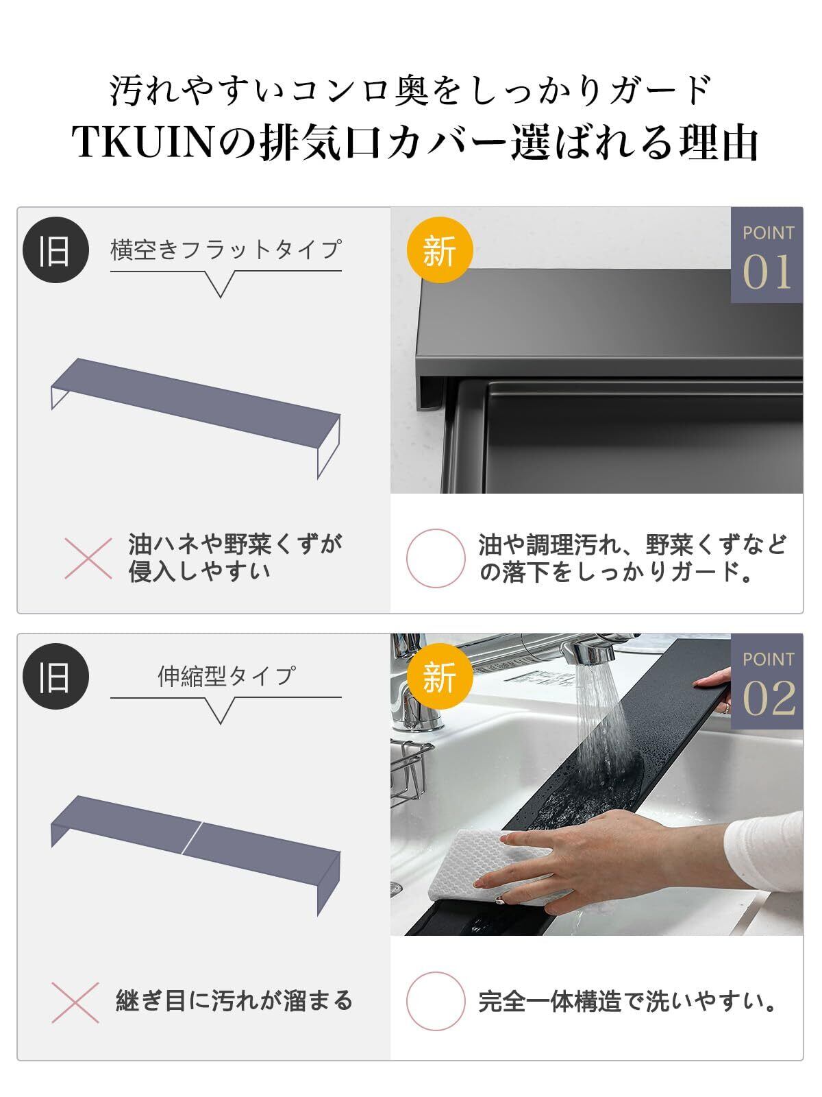 [高品質・薄型]排気口カバー 60cmフラット スマート TKUIN コンロラック IH ガス対応 コンロ キッチン 用品 レンジガード コンロ奥カバー 油はねガード お手入れ簡単 マットな質感 耐荷重10kg 滑り止め コンロカバー グリルカバー 排気口ガード