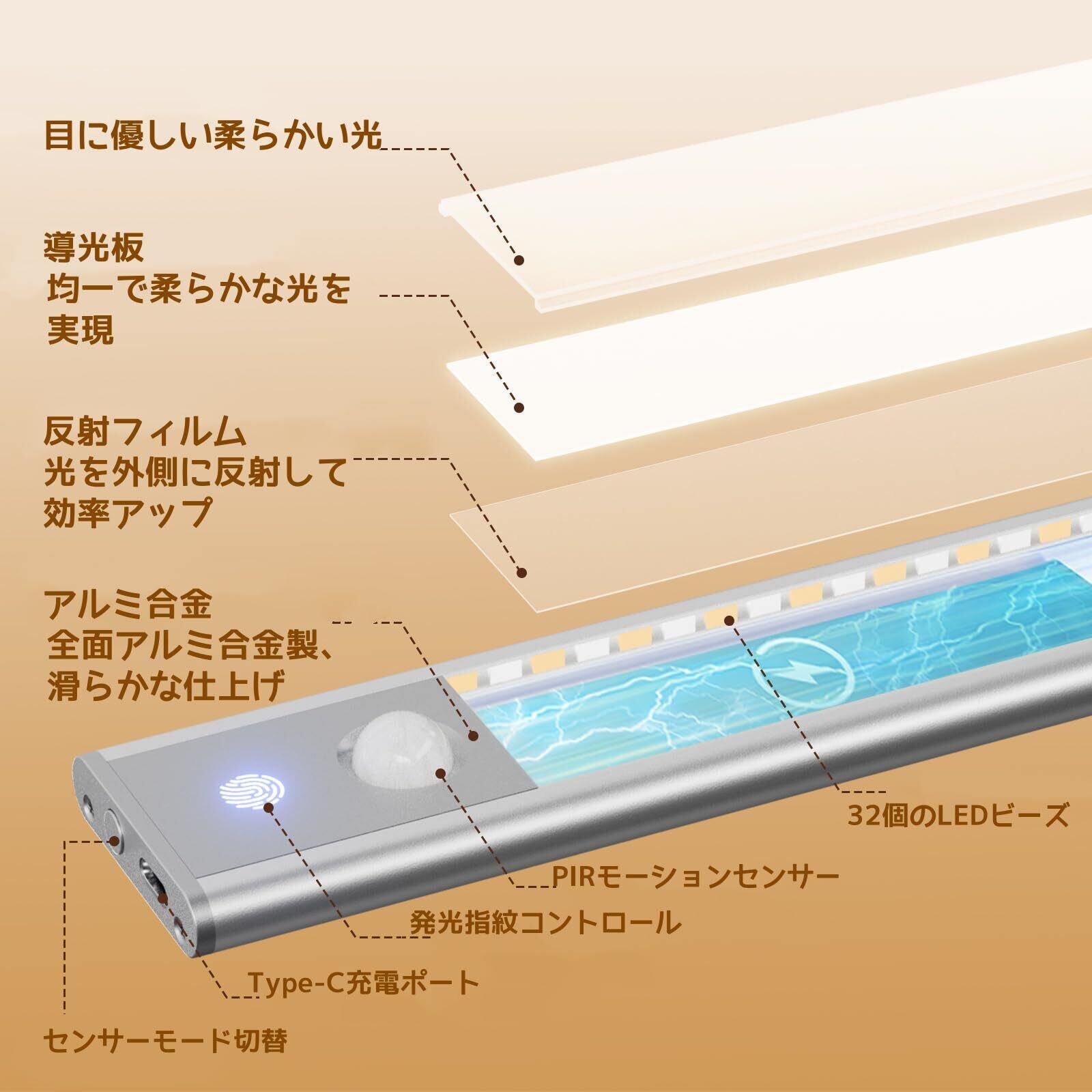 超薄型&スタイリッシュデザイン:たった1cmの薄さで、アルミボディがどんなお部屋にもフィット、50,000時間の耐久性もあるし、これでキッチンもクローゼットもおしゃれに明るくしちゃおう。