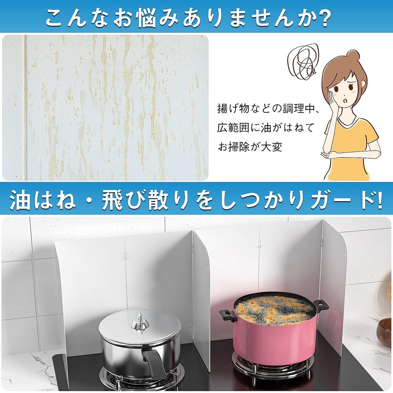 【4枚タイプ·油はね防止機能】このレンジガードは、サイズと形が自由に変えられるので、キッチンの壁に飛び散る料理の油汚れや汁はねを最小限に抑えることができます。また、1つのコンロだけを囲いやすく、適度な重みで安定感があります。シンプルなデザインで繰り返し使えて経済的です。