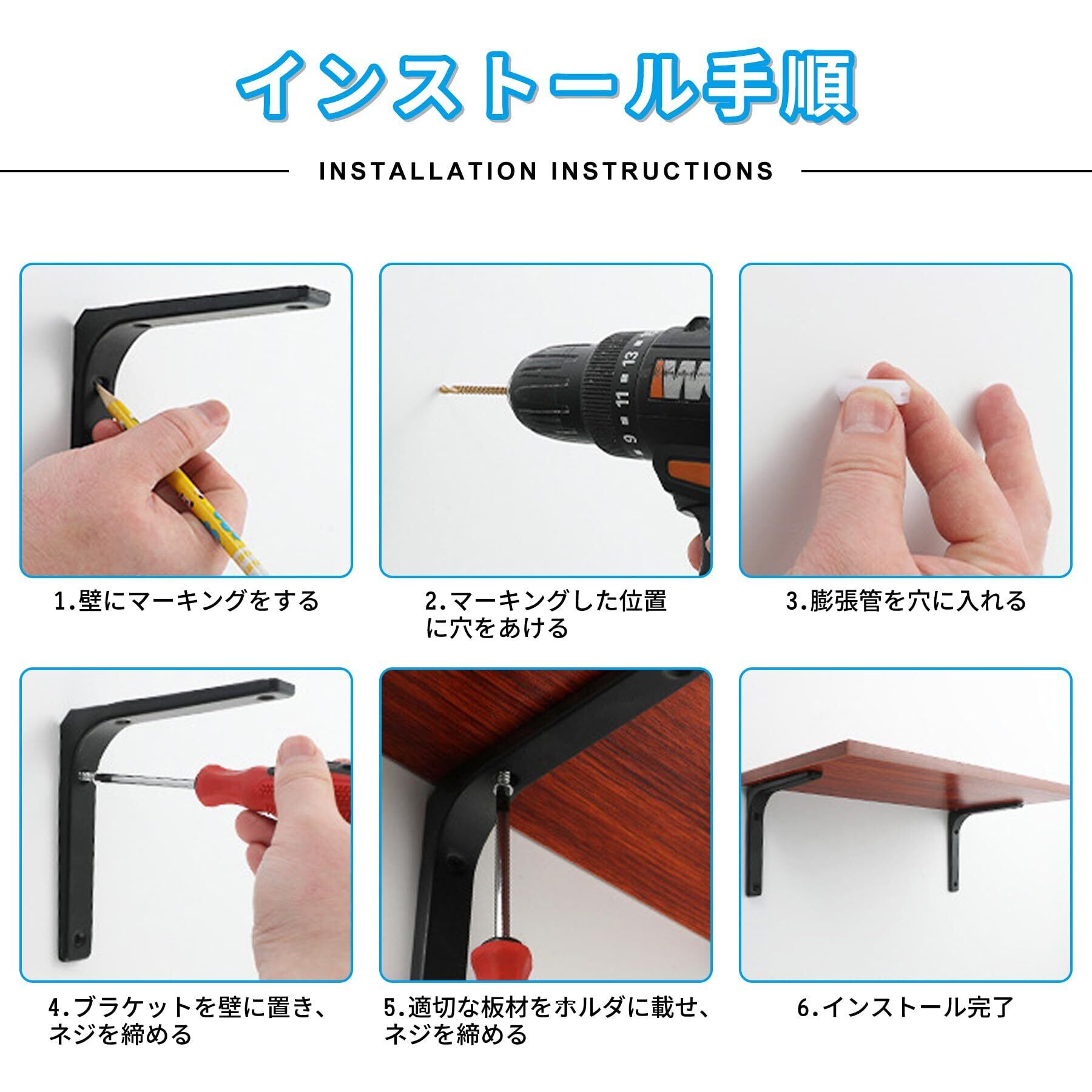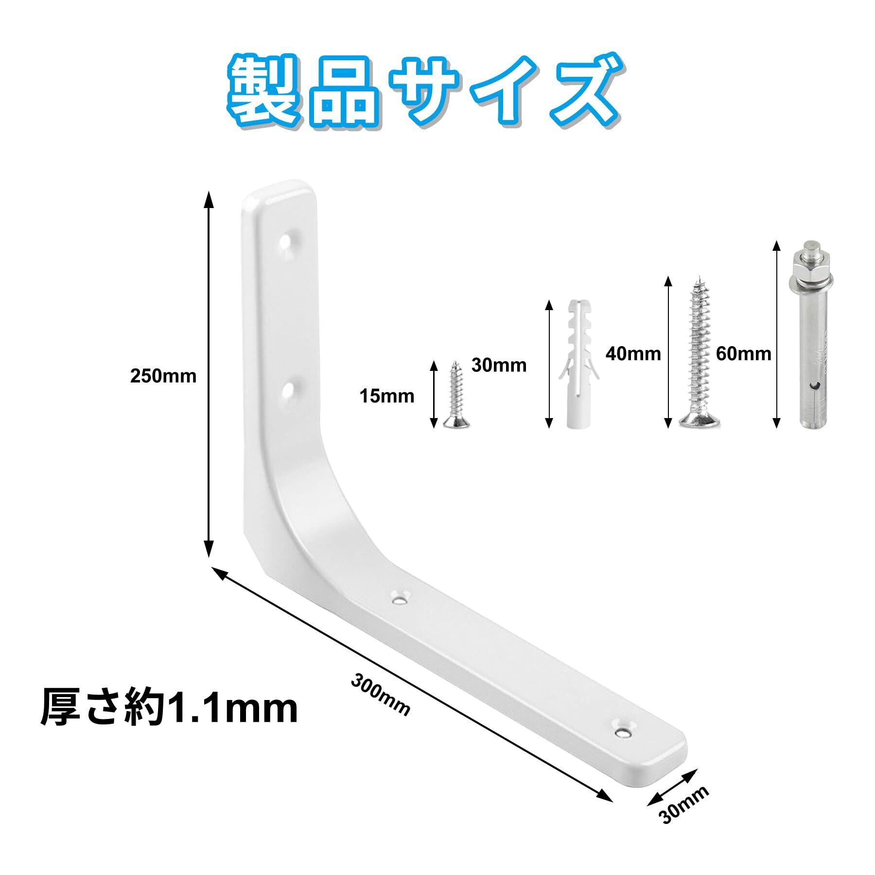 【優れた耐荷重能力】棚受け金具耐荷重は110kgまで、強い耐荷重性、頑丈で安定。 防錆、耐食性に優れ、屋外で使用しても錆びません。 絶妙な曲げ加工で、棚受け90°水平であることを確認します。 傾くことなく好きなものを置けるので安心です。