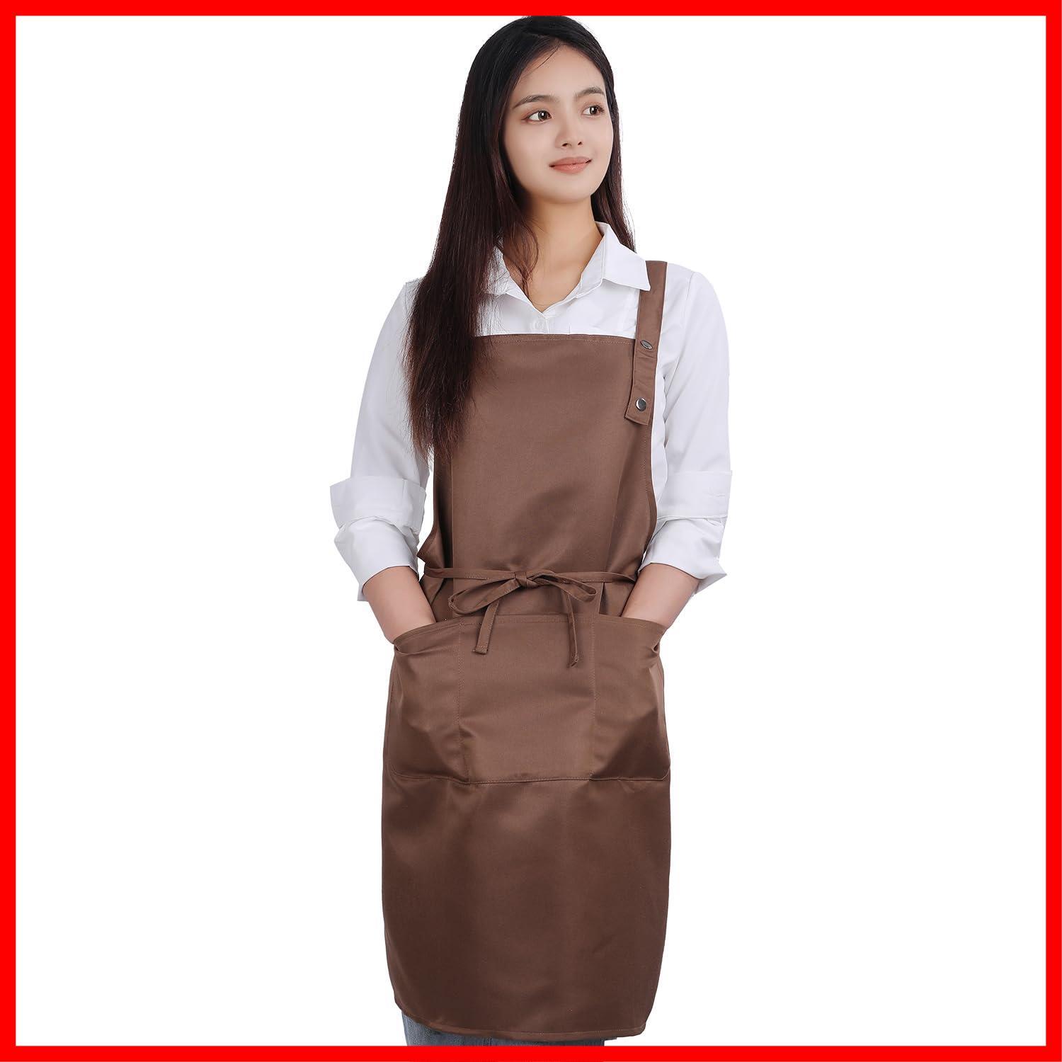 色:2ブラウンキッチン [H型] カフェエプロン [ポケット3つ] DIY [撥水] ガーデニング レディース 2段階調整 エプロン シワ防止 [Sanleaves]