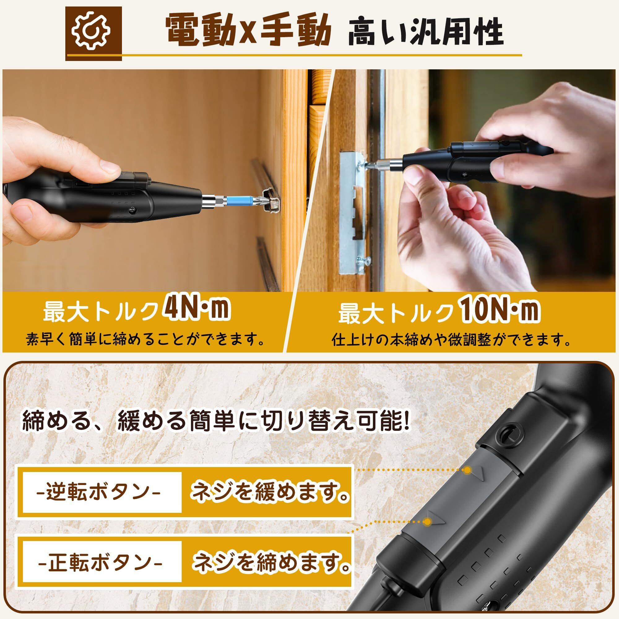 【強力アップデート & 強化版電動ドリル】Coolook 電動ドライバー、強力なオール銅モーターを搭載し、パワフルかつ長寿命の優れた性能を誇ります。小型 電働ドライバーは持ち運びのしやすさと使いやすさを実現し、狭さや困難な空間での作業にも効率的に対応します。電動ドリル、電動時の最大トルクが4N·m、手動時の最大トルクが10N·mに達する強力なパワーを発揮します。プロフェッショナルな現場だけでなく、家庭での日常使用にも最適です。日常生活やDIYプロジェクトで便利なパートナーとして活躍しています。