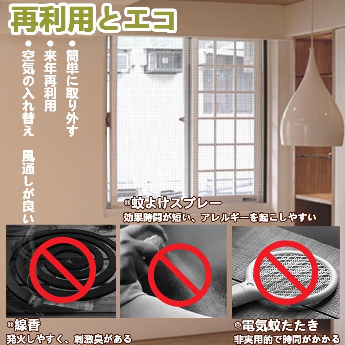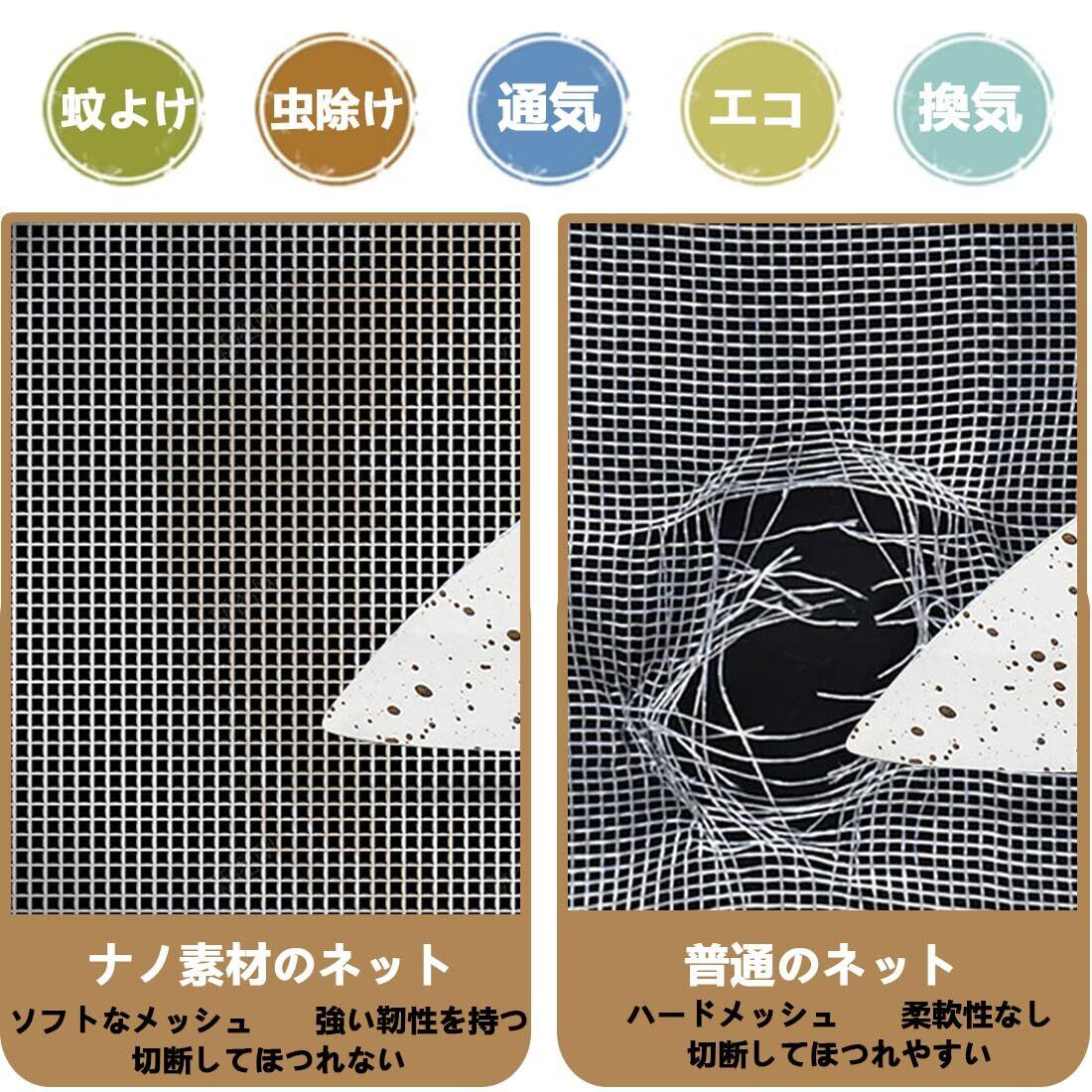 【再利用とエコ】ソフトなポリエステルメッシュを採用しており、強い靭性を持って、切断してほつれません。また簡単で取り外しができることで汚れとか使用しない時洗浄して保管して来年再利用することができます。エアコンを使わずに防虫網を取り付けることによって、空気の入れ替えができ、風通しが良くなり涼しく暮らすことができます。
