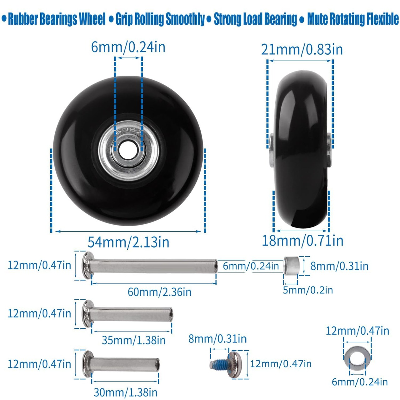 サイズ:Φ54mm車輪黒静音シリーズ用交換タイヤキット 4個セット 車輪 タイヤ 交換 修理 取替えDIY用 交換用車輪 車輪補修用 切断用鋸付き(輪軸30/35/60mm 輪幅18mm 輪直径54mm)