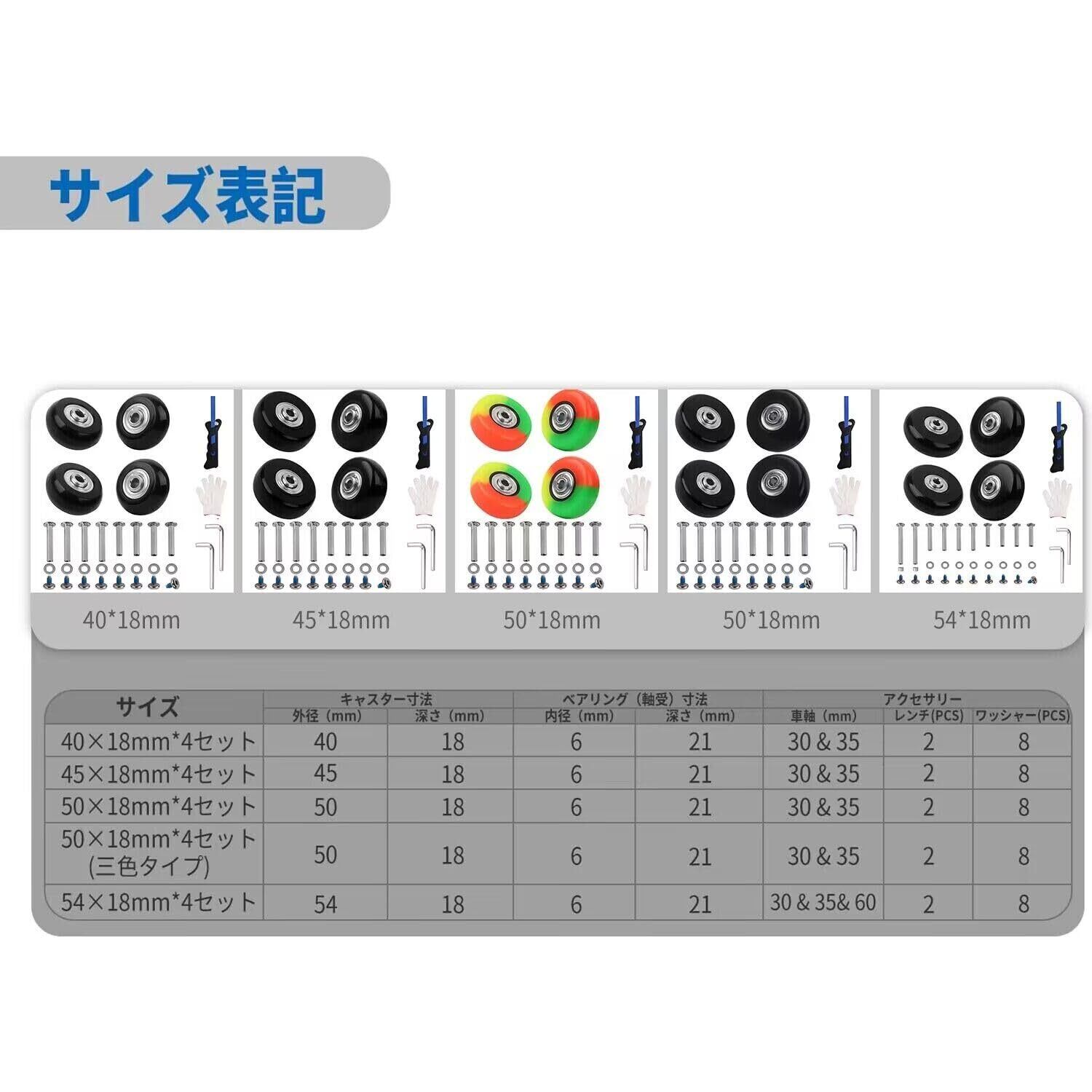 静音シリーズ用交換タイヤキット 4個セット 車輪 タイヤ 交換 修理 取替えDIY用 交換用車輪 車輪補修用 切断用鋸付き(輪軸30/35/60mm 輪幅18mm 輪直径54mm)