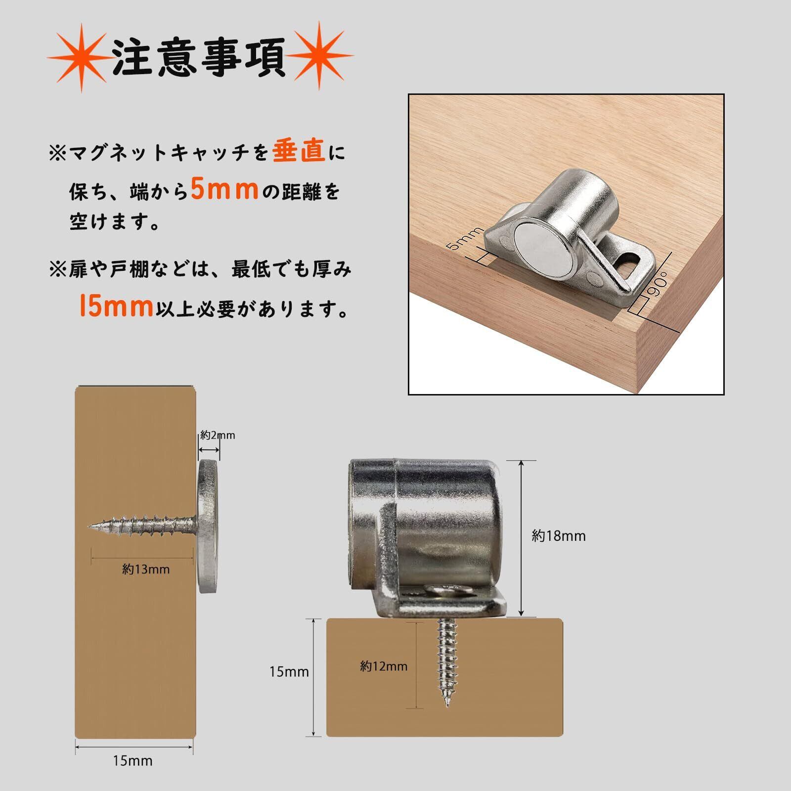 【超強磁力】このマグネットキャッチはしっかり閉まらず、ちょうつがいが足りないキャビネット開き戸の開き戸として使用され、効果的に開き戸をロックすることができます。マグネットはドアや引き出しをしっかりと固定することができて、ドアや引き出しが勝手に開かないように閉まった状態を保持することができます。マグネットは振動する条件下でも簡単に落ちたり破損することはありません。※ドアの質量によっては、キャッチ機構が効かない場合の恐れがあります。