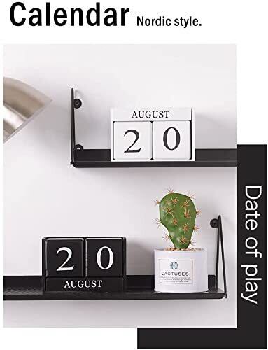 Yosoo 木製 万年カレンダー DIY年プランナーペンホルダー 再利用可能 デスクカレンダーブロック
