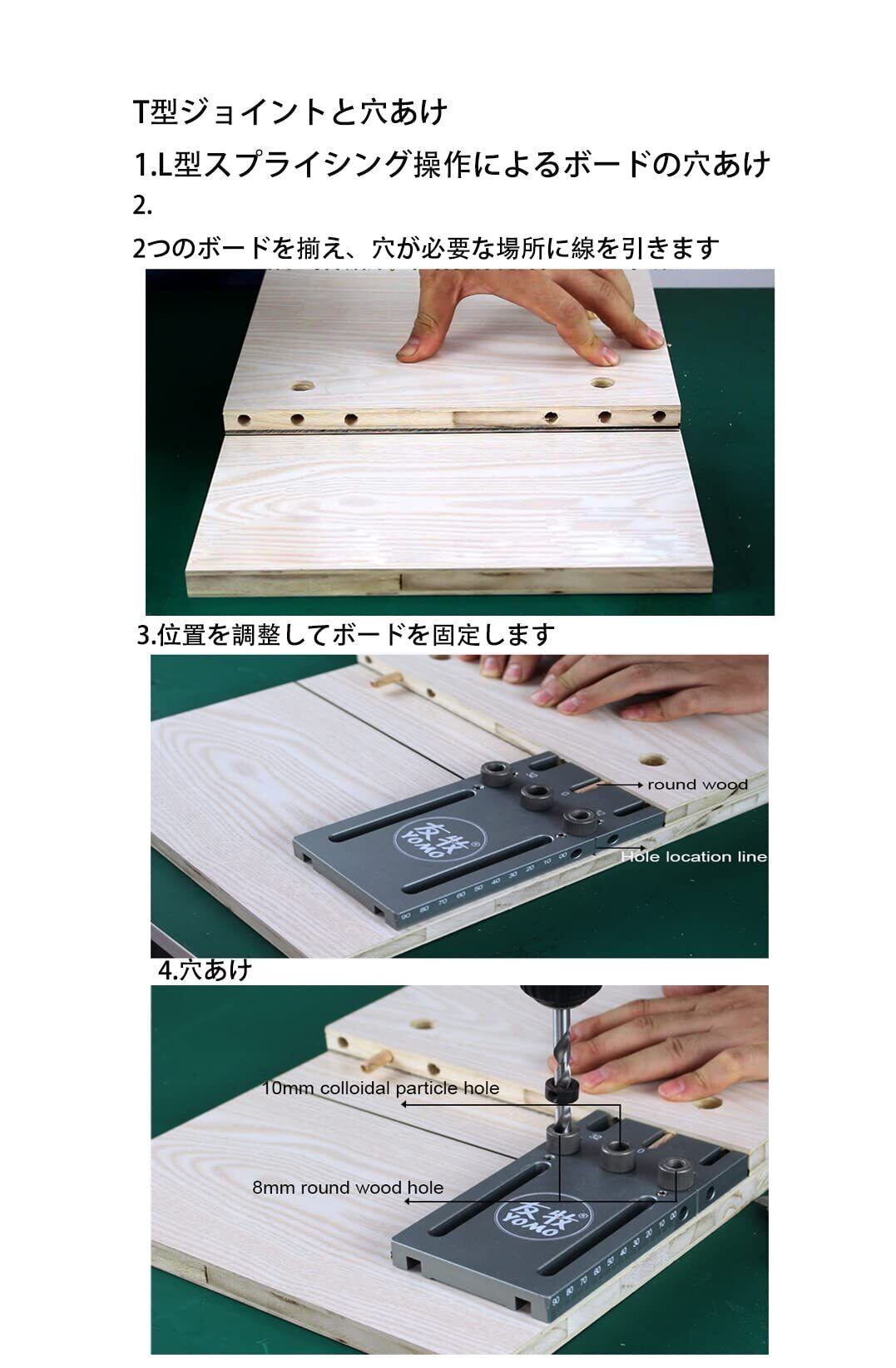 【幅広い用途】エッジ、サーフェス、T字型、L字型のジョイントに使用できます。ダボホールポジショニングなどに適しています。6/8/10 /15mm穴を開ける為に設計され、ストッパリングと合わせて、ほどよいドリル角度に決めることができます。