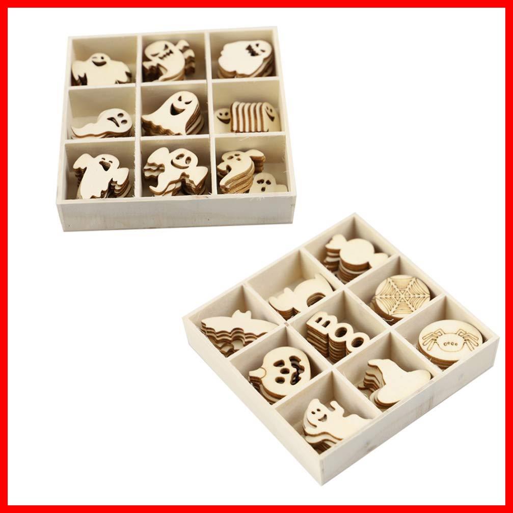 STOBOK 木製スライス ハロウィーン 144ピース ハロウィン オーナメント ハロウィン 装飾 ハロウィン diy 実用的なDIY木製スライス工芸品ハロウィンペンダント家の装飾 2セット