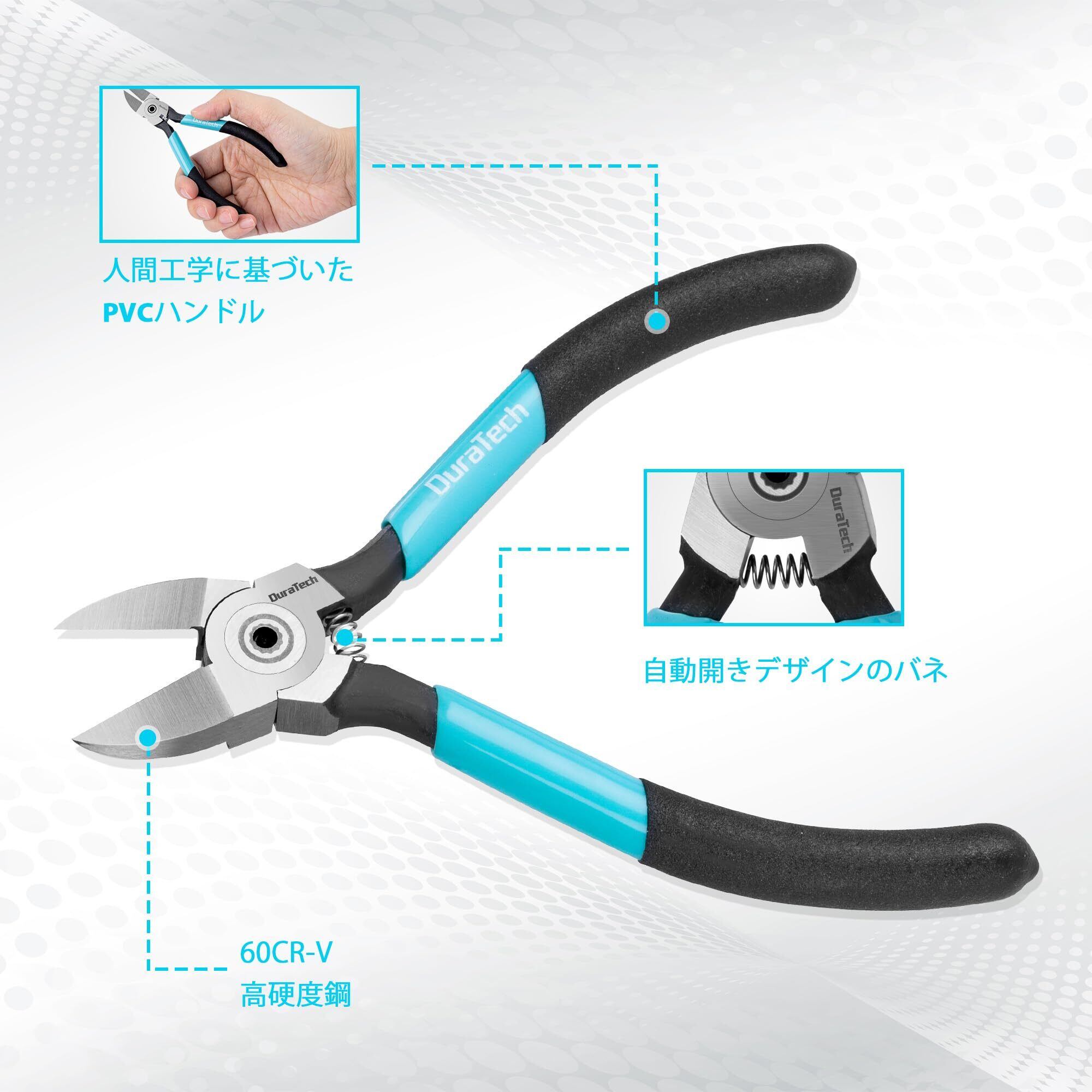 DURATECH ニッパー プラスチックニッパー 小型ニッパー 薄刃ニッパー 129mm 斜めプライヤー 精密ニッパー ワイヤーニッパー 軟鉄 銅線切断 DIY手作り 被膜剥き プラモデル 手工業職人 電気工事 機械組立 修理 「バネ付き」