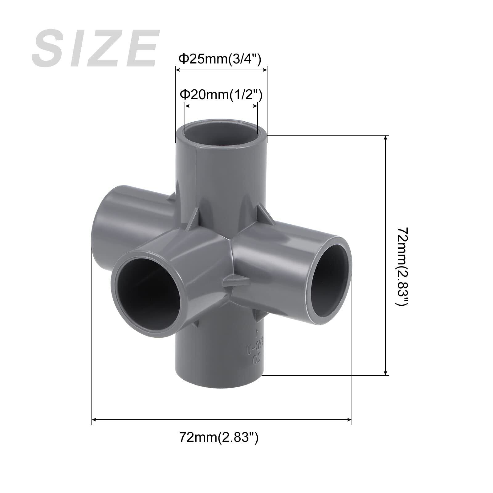 METALLIXITY ティーPVC管継手 20 mm 2個 5方向エルボー PVC管継手家具コネクター 水道 DIY ガーデンシェルフ 温室用 グレー