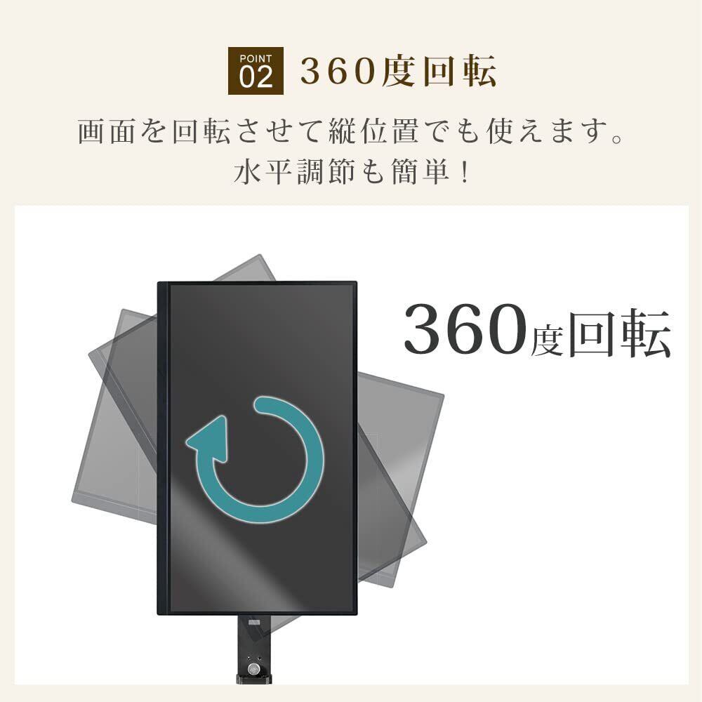 【商品特徴】パーテーションにモニターを設置することで省スペースに。高さ調整最大235㎜、モニターを360度回転させることができます。