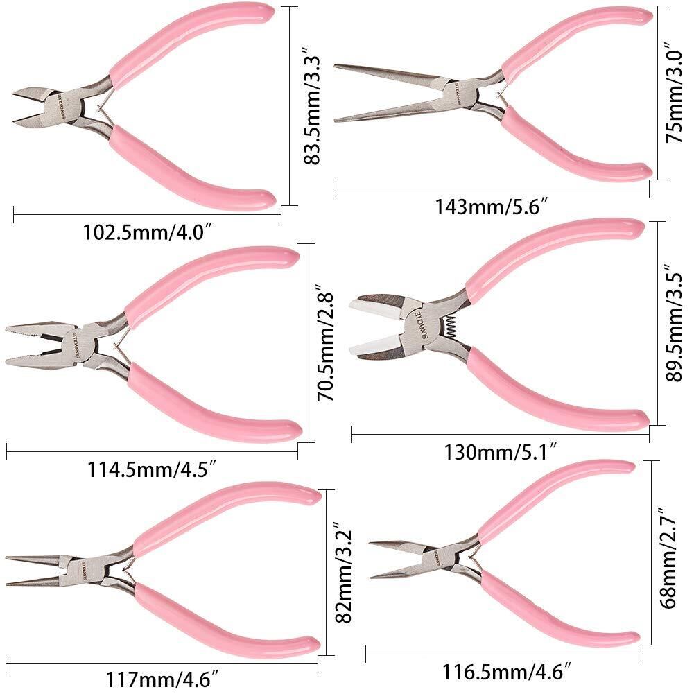 SUNNYCLUE 6本 ナイロンジョー プライヤー 平ヤットコ 平ペンチ ワイヤーループペンチ フラットノーズペンチ ニードルノーズプライヤー ロングノーズ ニッパー カットニッパー ペンチ カッター ラウンドノーズペンチ 丸ペンチ ラウンドプライヤー 極細 先細ペンチ ギザ付き 喰切 ピン曲げ ワイヤー マルカン ジャンプリング プライヤーセット アクセサリー用 製作 ジュエリーツール 炭素鋼 ピンク DIY手作り工具 クラフト道具