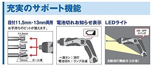 最大締付トルク:高速1.5N・m(15kgf・cm) 低速4.4N・m(45kgf・cm)