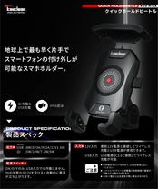 【QI充電&USB充電】 車両12VとUSB(QC3.0)の2種類の入力方法。同時に使えるQIワイヤレス充電とUSB充電。 ■出力:QI15W/10W/7.5W/5W、USB(タイプC)18W(5V3A/9V2A/12V1.5A) ※機種の要求した電力で充電されます。 ■12V入力:車両12V電源と接続してワイヤレス充電とUSB電源が使用できます。※バッテリーレス車、6V、24Vバッテリー車では使用できません。 ■USB入力:USB電源QC3.0と接続してワイヤレス充電が可能※本体コネクタータイプC。USB-C電源とは互換性が無い場合があります。モバイルバッテリーは消費電力抑制制御で電源が遮断される場合があります。雨天時はキャップを締めて使用しないでください。 ■防水:IP66防水で突然の雨にも対応。 ■電源スイッチ:ON/OFFのみ、USB入力では作動しません。0Vの状態から12Vを受けると自動的に電源が立ち上がります。 ■配線:1.75m目立たない黒ダブルコード(プラス側が白の文字のライン)、(ヒューズホルダー付き、ギボシ付き、クワガタ端子変換可能) ■ご注意:電圧降下についてわからない方(業者様を含む)はマイナスをバッテリーマイナス端子に直接配線してください。ボディアースはバッテリーマイナス端子とアースポイントの抵抗値が0Ωであることが確認できる場合のみ使用可能、ハンドルなど抵抗値が不安定なポイントでアース接続しないでください。圧着端子類の接触面積低下による電圧降下にもご注意ください。※アースの抵抗は無負荷では電圧が正常、負荷が掛かると電圧が降下します。 電源の確認方法は必ず以下の条件で負荷電圧を測定してください。(配線が接続され回路が成立している状態、スマホホルダーの電源スイッチON、SAEコネクターに隙間を空けてプローブを当てて計測)※無負荷の電圧測定は電源の良否判定になりません。 【対応参考機種】 ■縦幅130~175mm、横幅60~90mm(スマホ機種のサイズが範囲内かご確認ください。) ■厚さ15mm以下(厚みがあるスマホ機種やケースにご注意ください。)、■ご注意:■バンカーリングや中央に穴が開いているスマホケースは中央のボタンが押せない場合があります。■カメラが大きく突き出す機種は中央のボタンが押せない事があります。iPhone 15 シリーズ等のカメラが大きく突き出している機種は、スマホケースで突き出し量を抑制していただく事でご使用頂けます。■非対応機種:iPhone 15 シリーズ(カメラの突き出し)、Xperia、Aquos(QI充電位置が中央に無い)■ワイドアジャスター構造でアームの横幅が調整できることで縦長のスマートフォンにも対応する事ができます。■最大15mmの厚さに対応できるので、今まで対応できなかった厚みがあるスマートフォンにも対応することができます。■iPhone11シリーズはワイヤレス充電をしながら、正確なGPSを表示できない場合があります。iOSの更新で解消される事があります。■スマホケースに金属や磁気が含まれているとそれを検知し、安全のためプロテクションが作動して停止します。スマホケースが分厚い場合はワイヤレス充電の飛距離が足りなくなり充電がされなくなります。■万一に備え、セーフティーバンドKDR-SFB-Cをご活用頂く、もしくはストラップKDR-SFB-S、カラビナなどを活用し、ホルダーセット後にハンドルと繋げる事で不測の事態に備える事をおすすめしています。