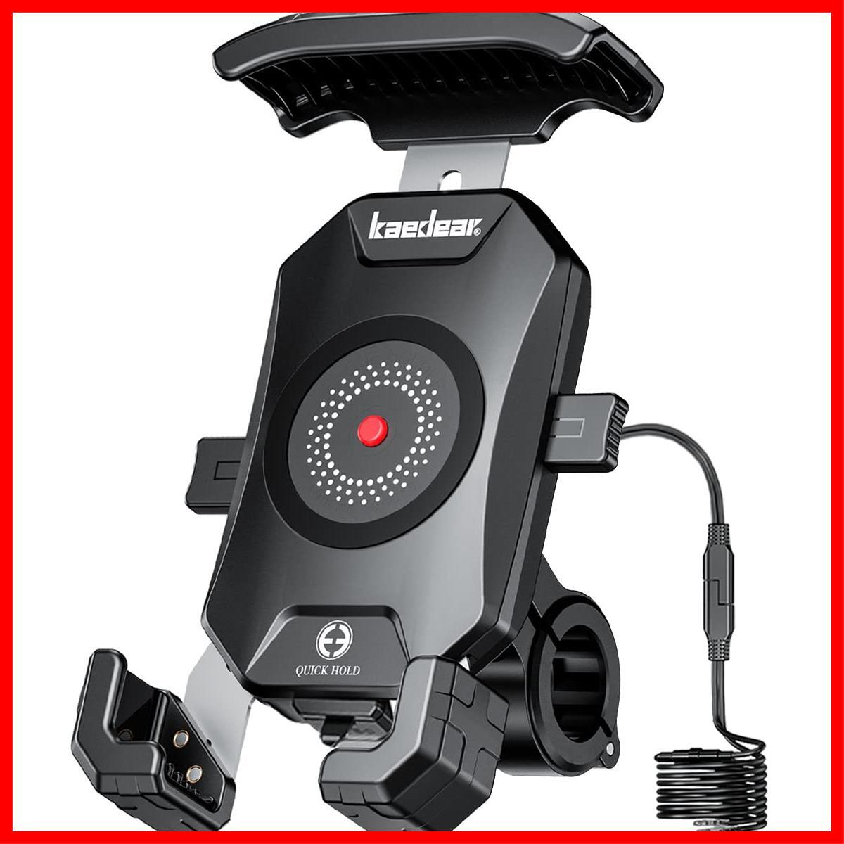 【新春セール】バイク用スマホホルダー 携帯ホルダー USB電源 振動吸収 ワイヤレス充電 マウント QI 対応 防水 充電 クイックホールドビートル スマホホルダー QI&USB バイク KDR-M14A Kaedear(カエディア) (ブラック/充電)