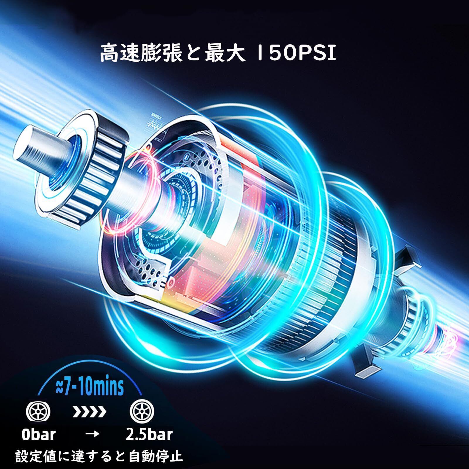 【4つの調整可能なモードと高速膨張】当社のタイヤ空気圧ポンプには、車/自転車/ボール/オートバイの膨張ニーズに合わせて調整できる4つの異なるモードがあり、選択後はデフォルトの空気圧が自動的に従います。 PSI/BAR/KPA/Kg/cm²の4つの圧力単位があり、自由に調整できます。 高速膨張、小型車のタイヤを1分で27PSIから36PSIまで膨張させることができ、最大圧力は150PSIです。
