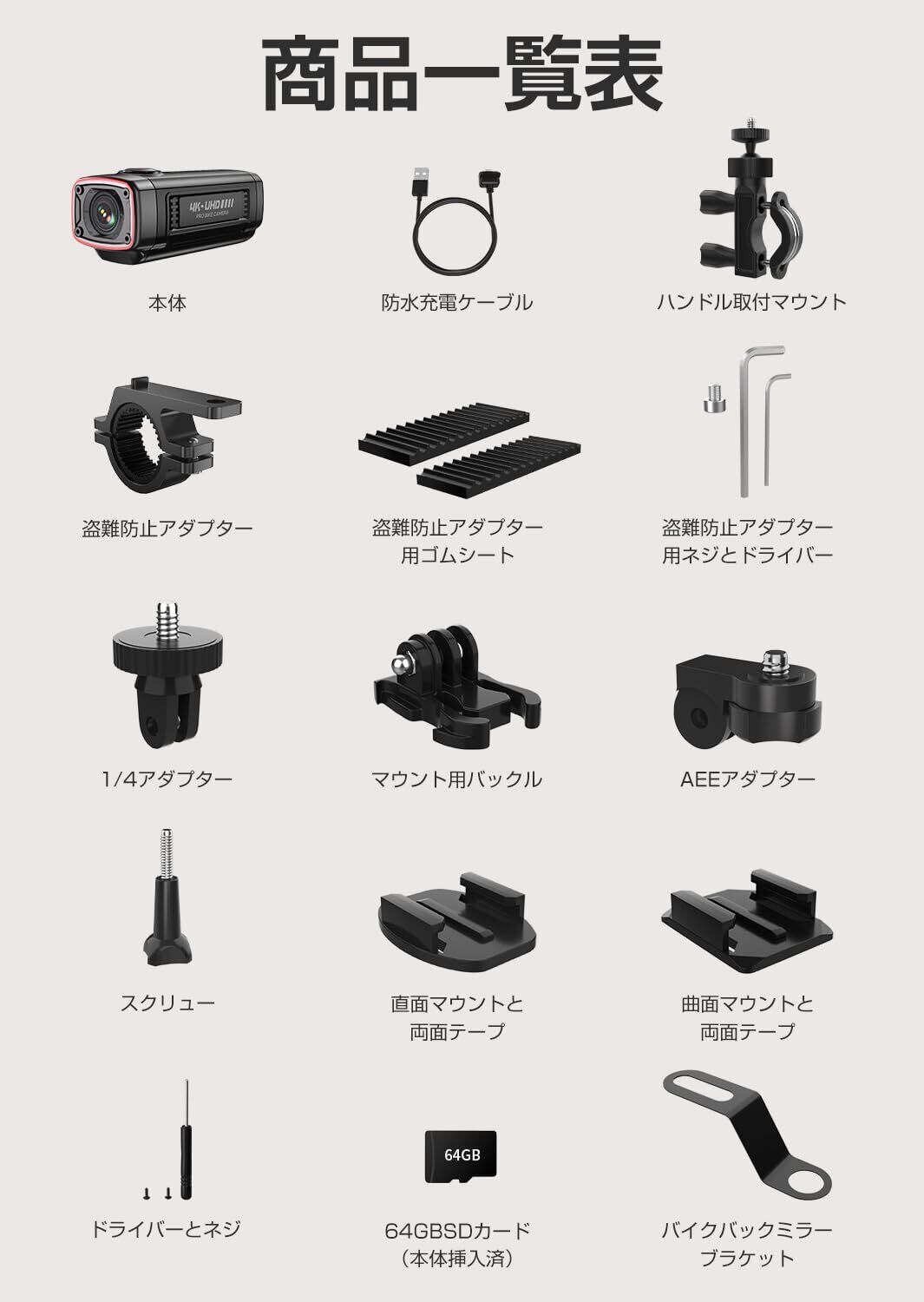 【4種類の取付&LED信号機対応&1年保証】4種類の取り付けマウントを付属しており、ハンドルやヘルメット・バックミラーに取付など用途に合わせてさまざまな場所に設置できます。配線不要で簡単に取り外せるので、駐車時の盗難のリスクも低減できます。HDR搭載により逆光に強く、日本全国のLED信号機もチラつかずに撮影可能、録画していることが一目で分かります。※取り付ける場所を選ばずに使える製品をお探しの人におすすめ。分かりやすい日本語説明書を作成しました。DIYで簡単に取り付けできる。万が一、本体や付属品に不具合や故障と思われる現象が発生した場合、どうかお気軽に弊社にお問い合わせください。
