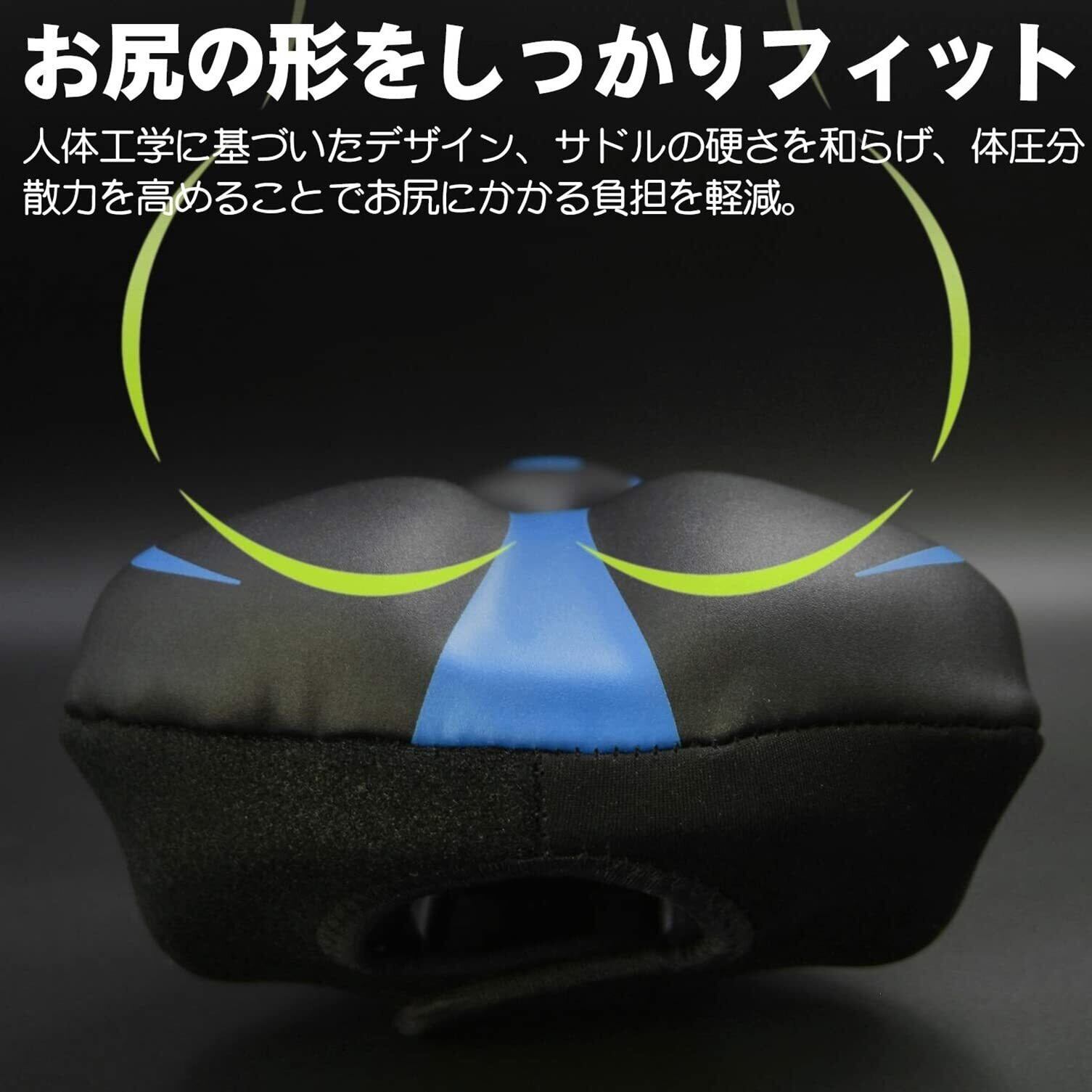 色:ブラック/ブルー自転車サドルカバー クッション 超肉厚 お尻が痛くない 衝撃吸収 滑り止め PU表地 ロードバイク/マウンテンバイク