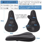 適用サドルの長さ:25~28cm、適用サドルの幅:13~15cm、※サドルのサイズを確認してからご購入することをおすすめします。マウンテンバイク、ロードバイク、クロスバイクなどのスポーツ自転車用の細身のサドルに適用しています。