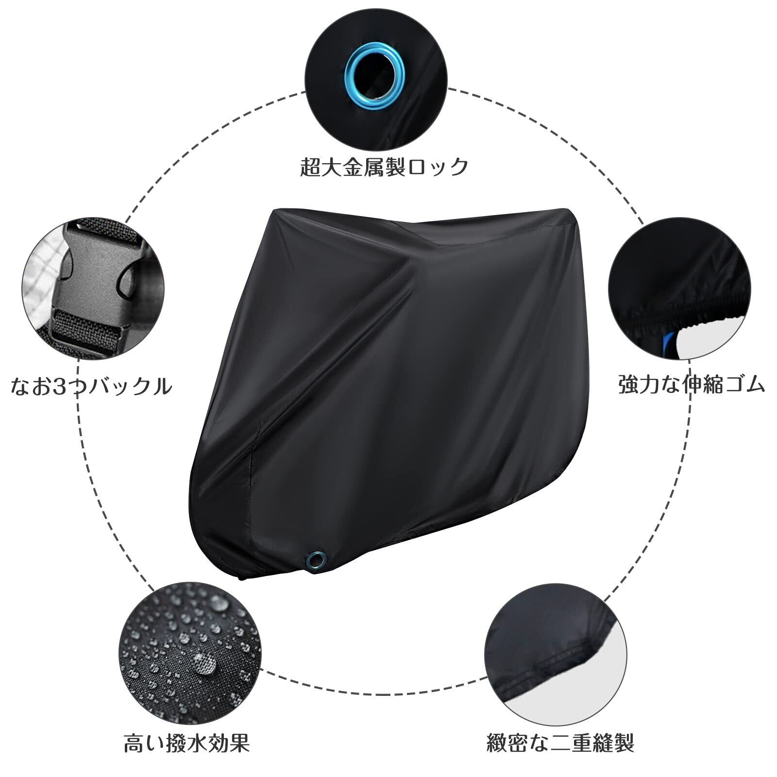 自転車カバー サイクルカバー 防水 厚手 防犯 丈夫 撥水加工UVカット 防塵 破れにくい 29インチまで対応 台風/雨/風/紫外線/砂適用 収納袋付き ブラック