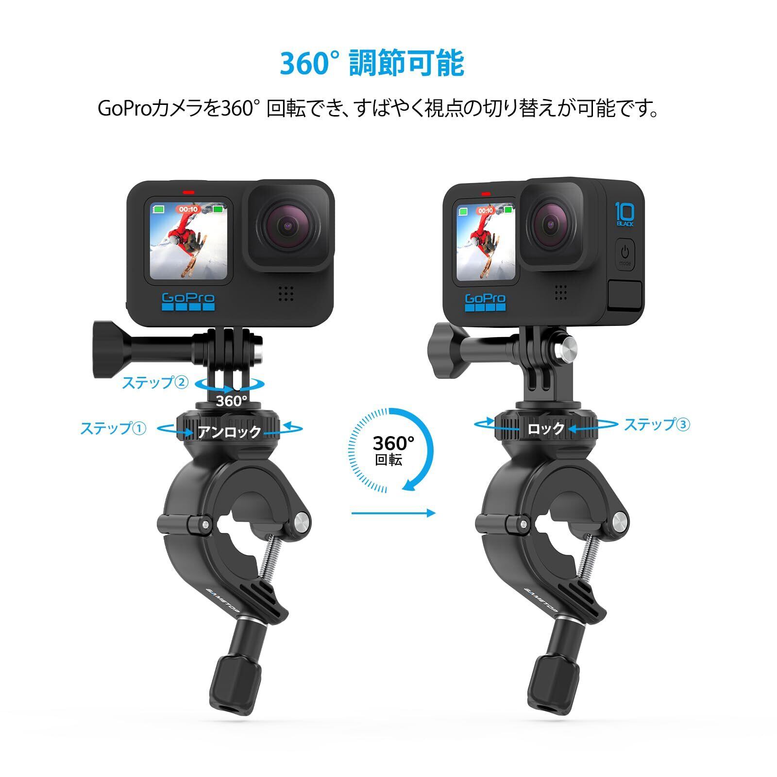 【Sametop】バイクマウント 自転車マウント クランプマウント 360度回転 カメラマウント ホルダー オートバイ ハンドルバー シートポスト ポールマウント ゴープロ GoPro用 Hero 12 11 10 9 8 7 6 5 Session DJIアクションカメラに対応