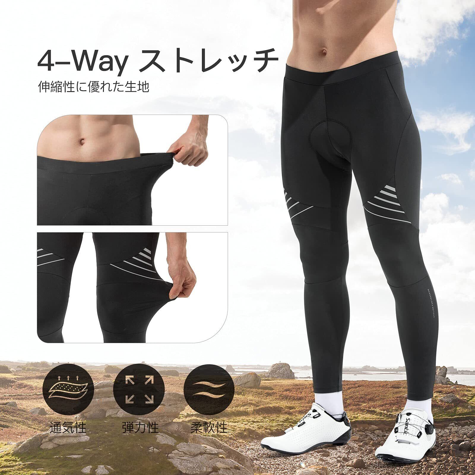 色:ブラック_サイズ:Mレーサーパンツ パッド付 サイクルタイツ 自転車ウェア ロング サイクルパンツ ロードバイク メンズ サイクリング [サンティック]