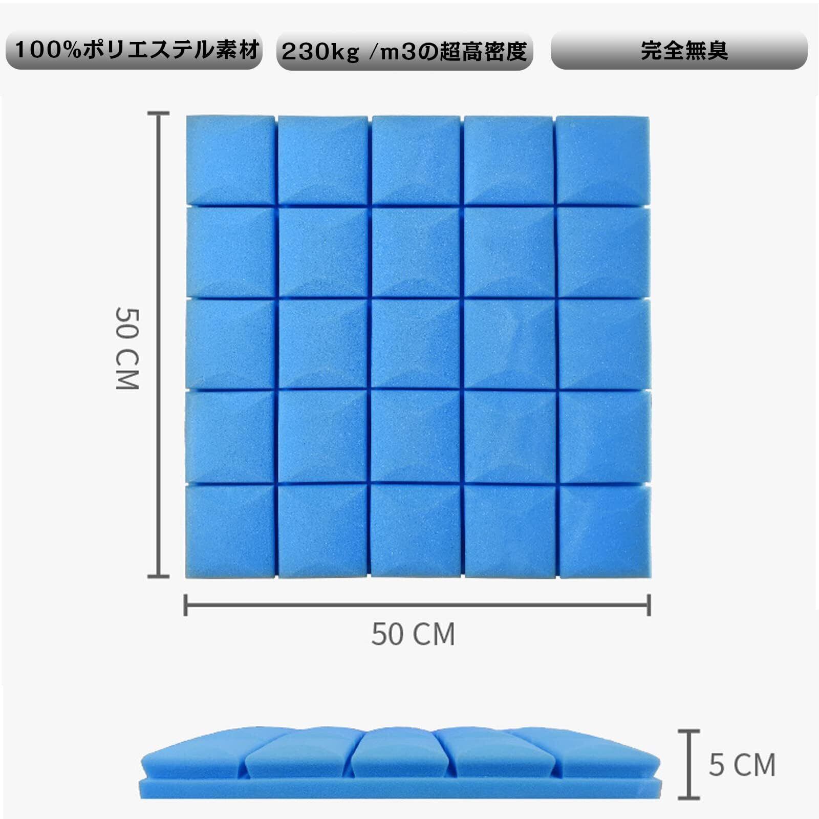 サイズ:6枚入れ_色:blue硬質吸音フェルトボード ウレタンフォーム 騒音軽減 難燃 防潮 消音、吸音対策 ピアノ室 吸音パネル 楽器練習室 遮音シート 録音室 50*50*5cm オフィス 防音シート 室内装飾 吸音材 強力両面テープ付き 吸音ボード (blue, GOATRIP 6枚入れ)